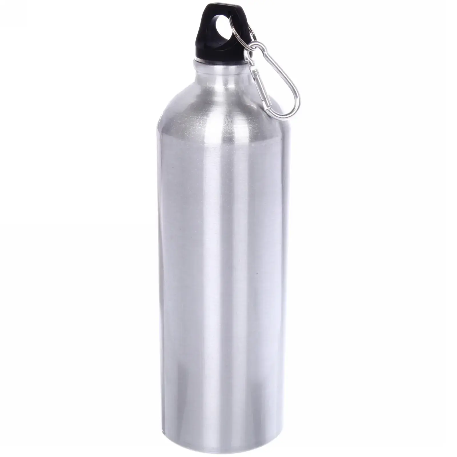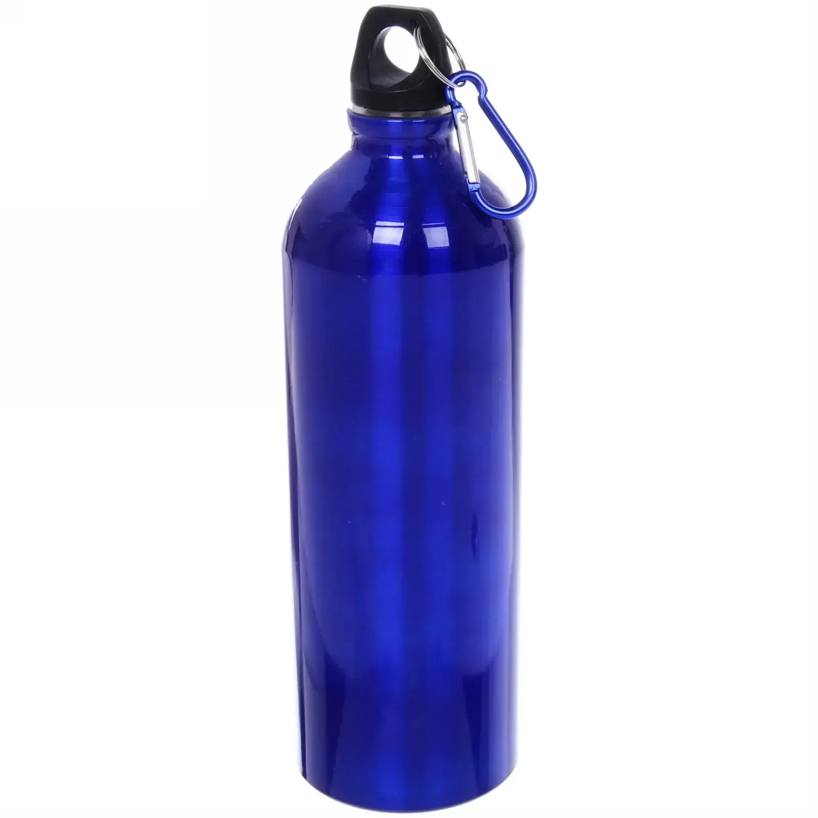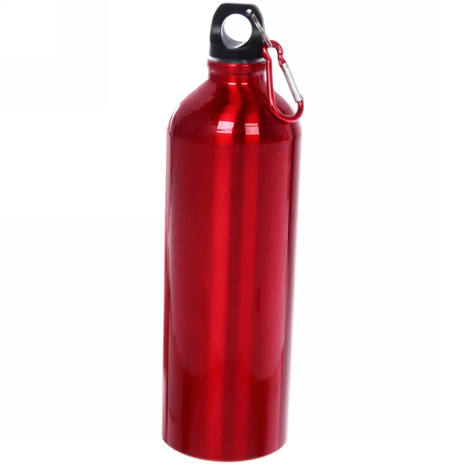 Фляга туристическая 1000мл с карабином, алюминий, пластиковая крышка, цвет металлик (синий/красный/серебристый)