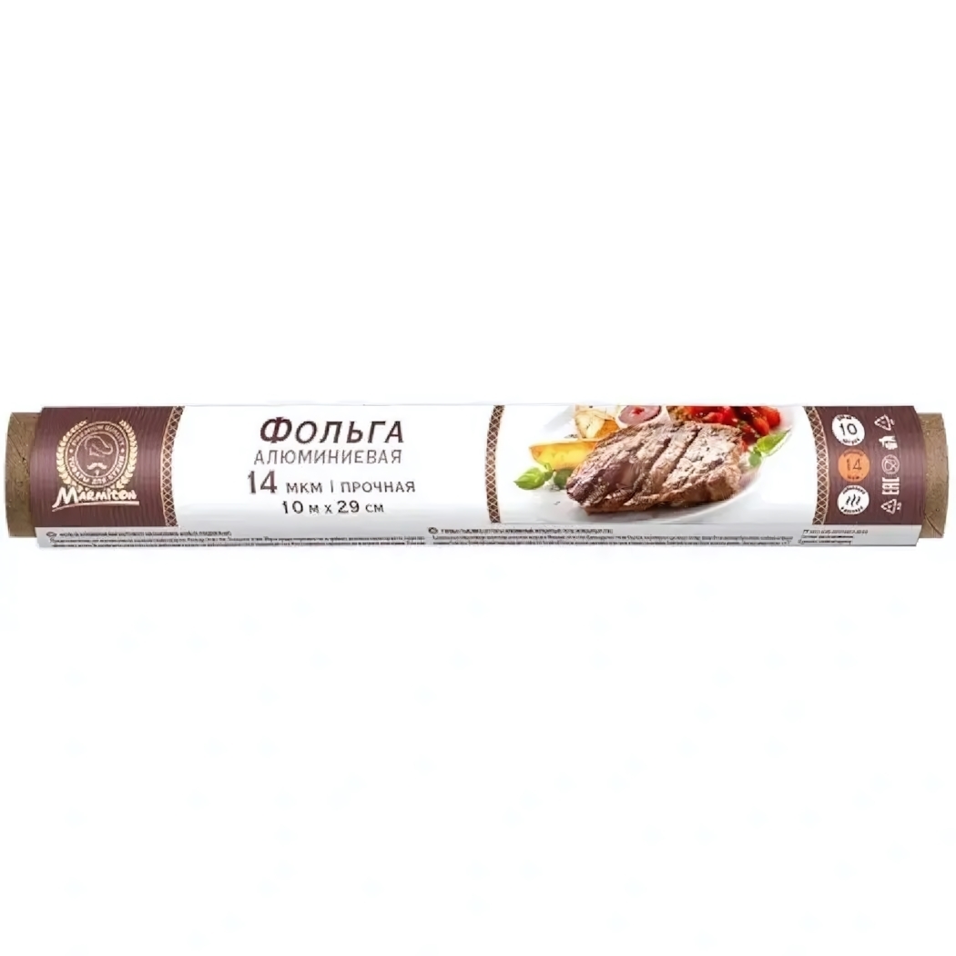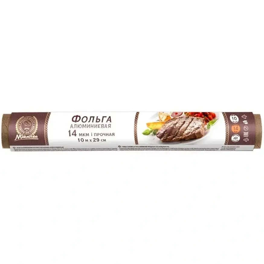 Изготовлена из высококачественного алюминия компанией ООО «РУСАЛ-Саянская фольга», Россия. Удобна в использовании — легко разрезается и сворачивается, подходит для однократного использования. Храните при температуре не ниже +5°C и влажности не выше 80%. Не рекомендуется использовать с кислотными или щелочными продуктами, а также с нержавеющей посудой.