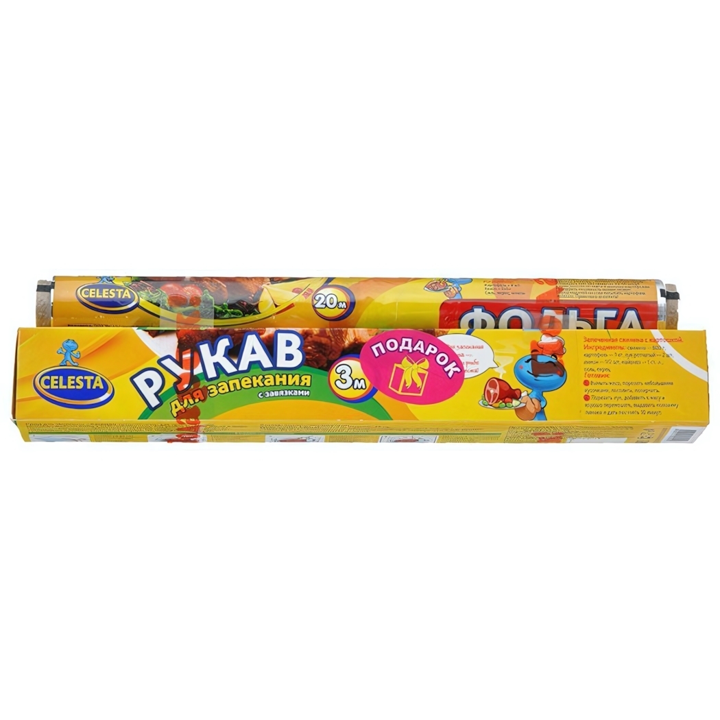Фольга выполнена из качественного алюминия, что обеспечивает ее долговечность и практичность. Упаковка имеет яркий желтый цвет с красными и белыми элементами, что делает ее заметной на кухне. Фольга «CELESTA» — это не просто упаковка, это ваш надежный партнер в кулинарии, который поможет вам готовить вкусные и полезные блюда.
