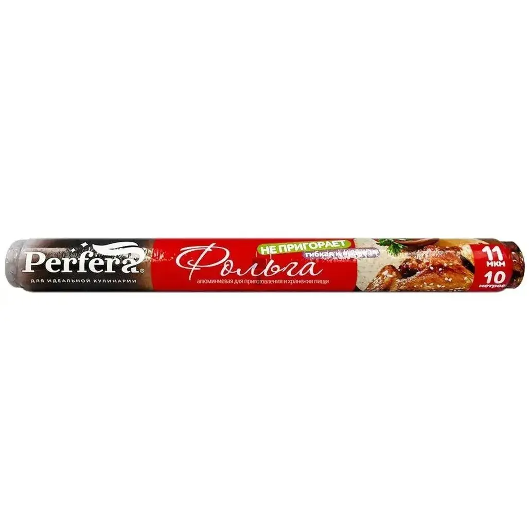 Фольга алюминиевая «Perfera» 11 мкм, 10 м — не пригорает, для запекания и гриля