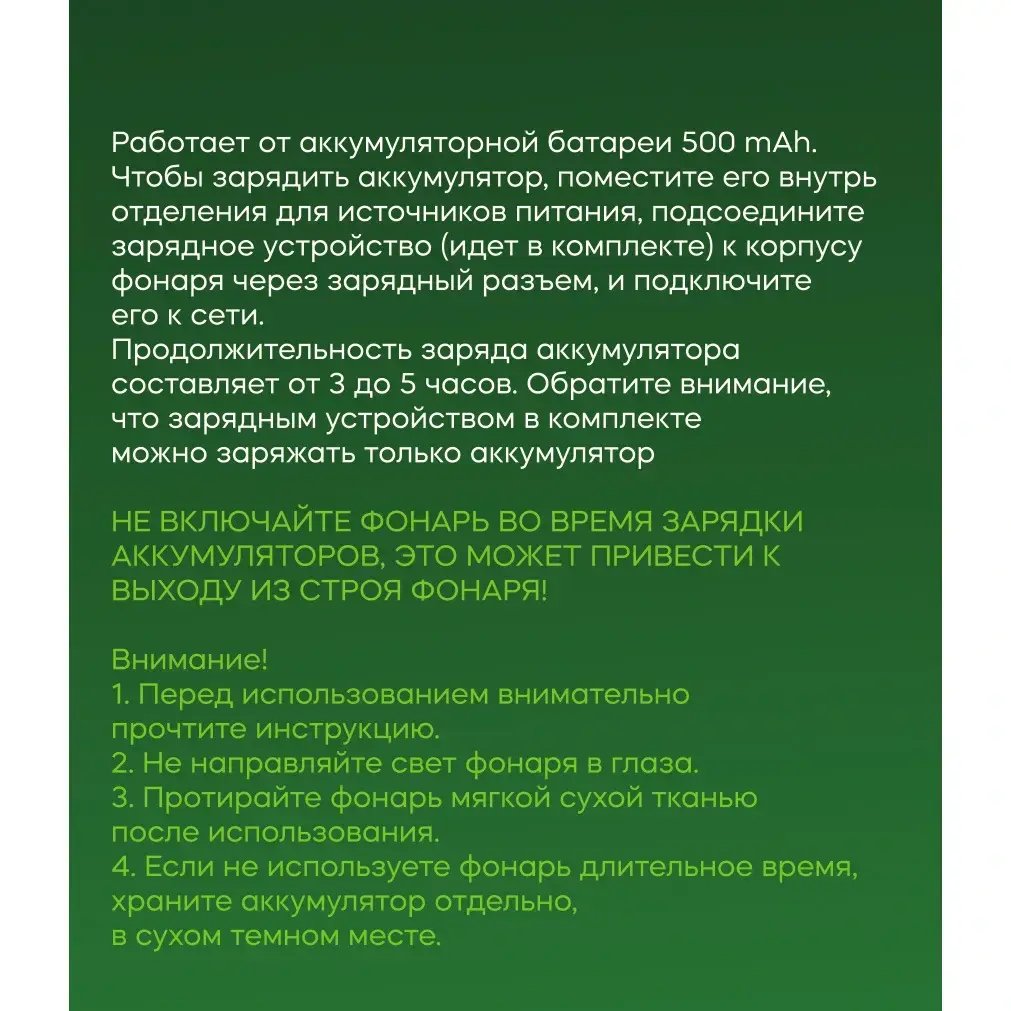 Не упустите возможность сделать свою жизнь более комфортной и безопасной с нашим налобным фонарем. Заказывайте сейчас и наслаждайтесь качественным освещением в любых условиях!