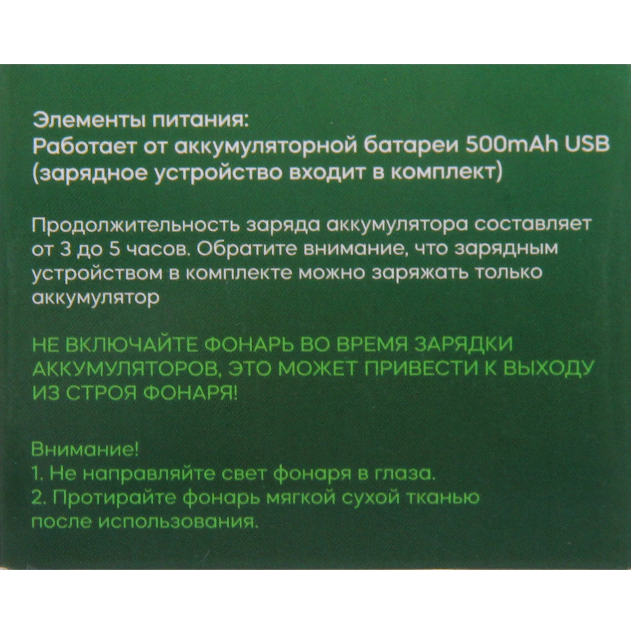 Корпус изделия выполнен из комбинации прочного пластика и металла, что обеспечивает легкость и надежность всей конструкции. Регулируемый эластичный ремешок позволяет надежно зафиксировать фонарь на голове или головном уборе, не вызывая дискомфорта при длительном ношении. Время полной зарядки составляет от 3 до 5 часов, а входящее в комплект зарядное устройство позволяет восполнить ресурс аккумулятора сразу после покупки.