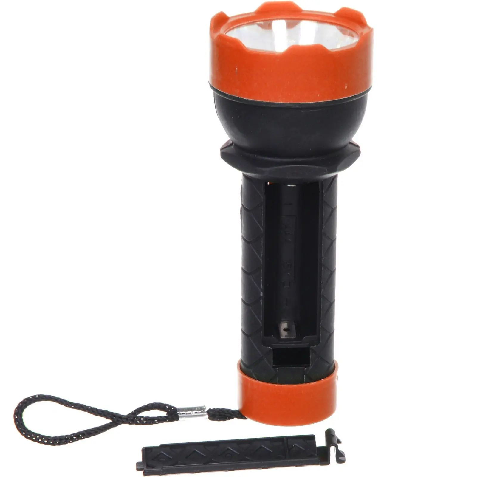Фонарь оснащен одним режимом работы и ярким светодиодом, который обеспечивает достаточную яркость для освещения темных участков. Он работает от одной батарейки типа AA, что делает его простым в использовании и обслуживании. Удобная текстурированная ручка обеспечивает надежный захват, а наличие шнурка для крепления позволяет легко носить фонарь с собой.