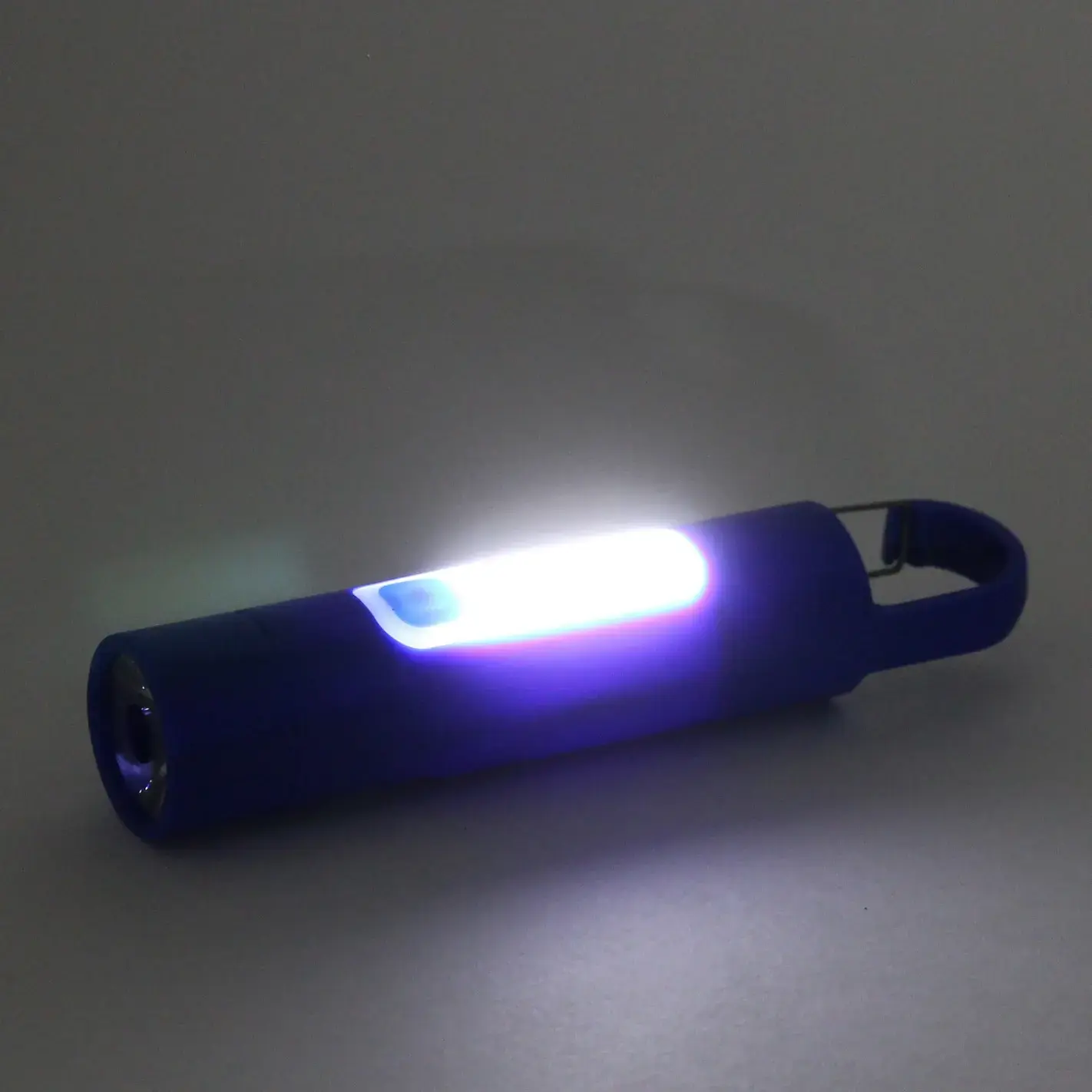 Фонарь выполнен в стильном синем цвете и имеет цилиндрическую форму, что делает его удобным для ручного использования. Он также оснащен кнопкой включения и выключения, расположенной на белой вставке, что обеспечивает легкость в управлении. Размеры фонаря идеально подходят для хранения в кармане или сумке, а его современный дизайн будет радовать глаз.