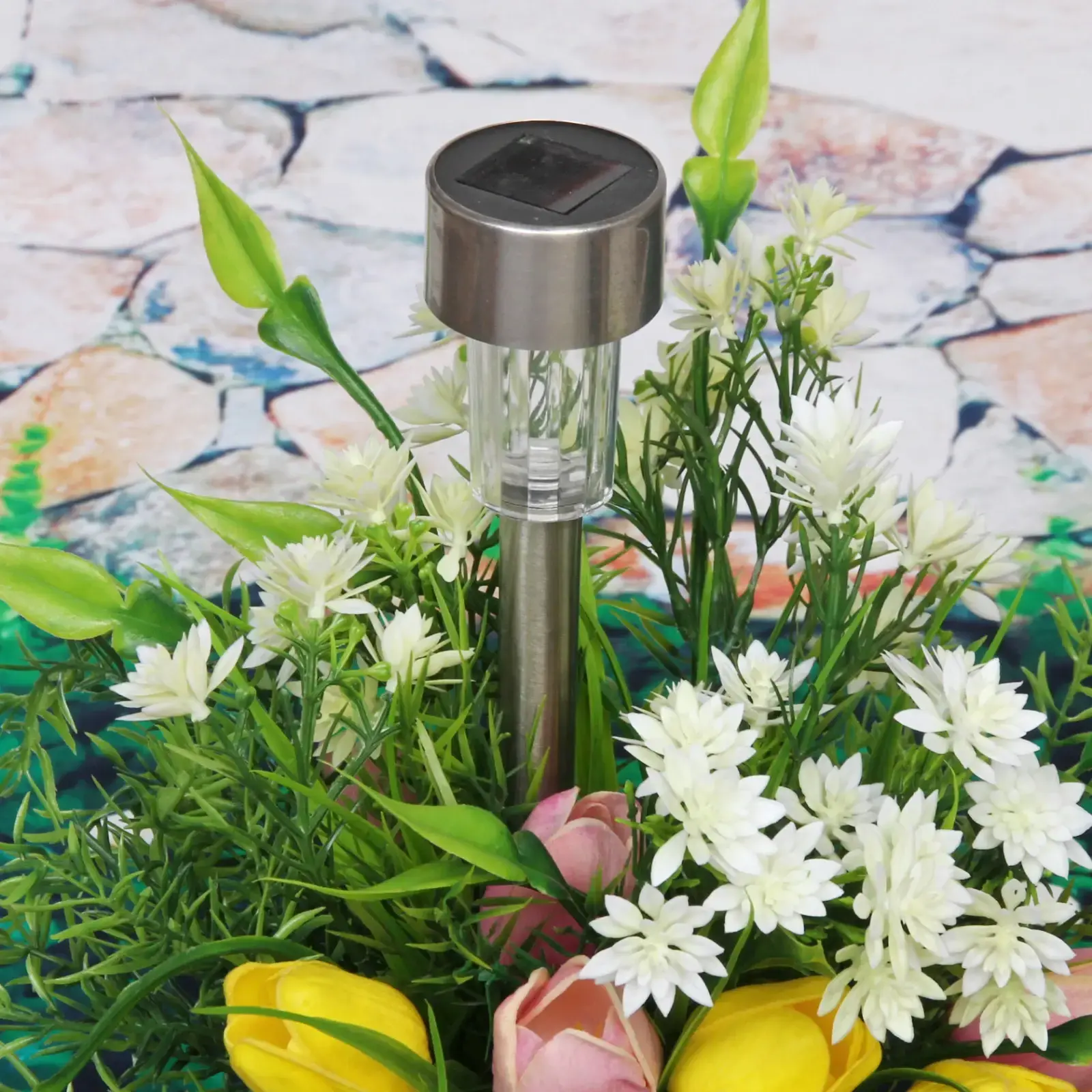Полностью готов к использованию — просто воткните в землю в солнечном месте. Не требует технического обслуживания: днём накапливает энергию, ночью автоматически освещает территорию до 8 часов.