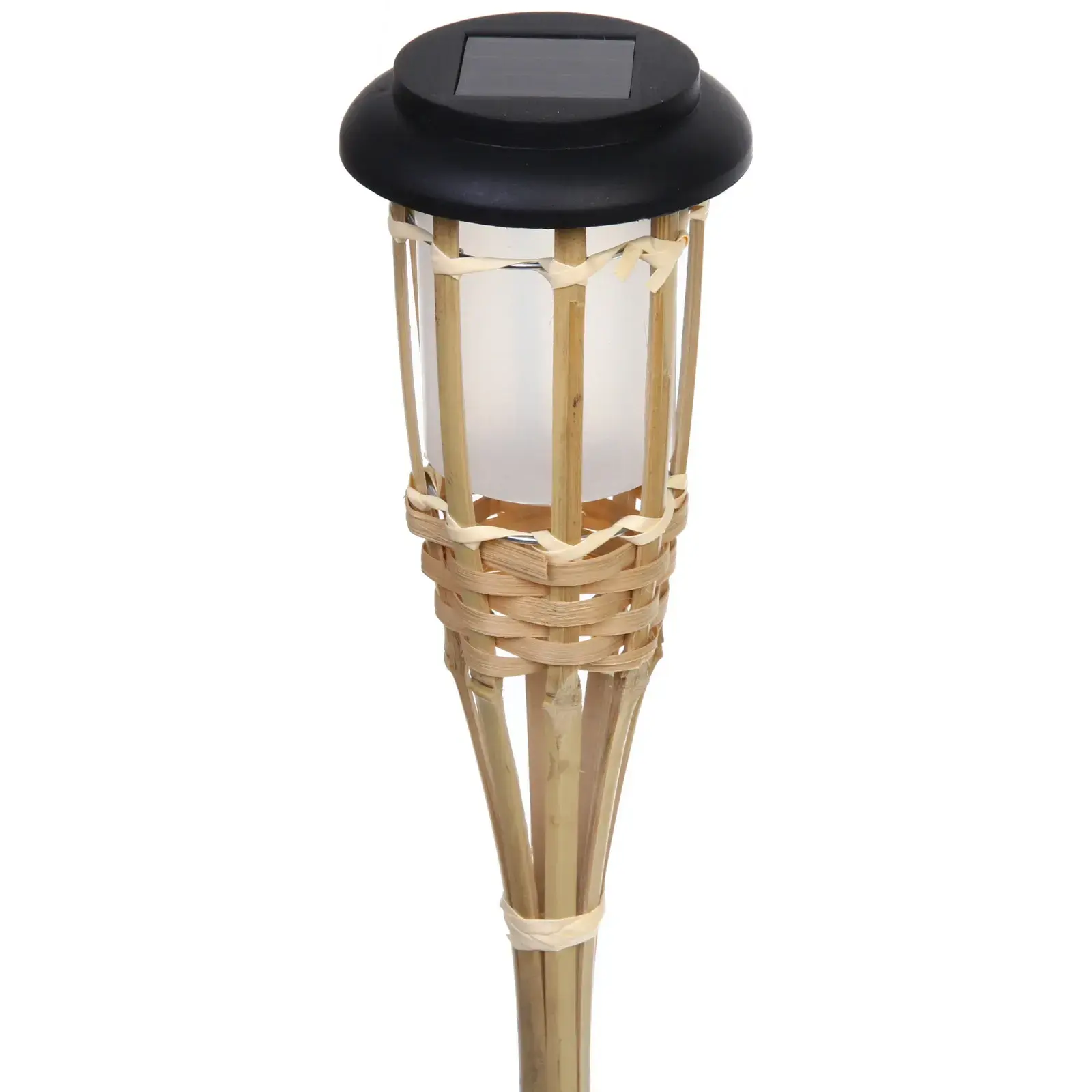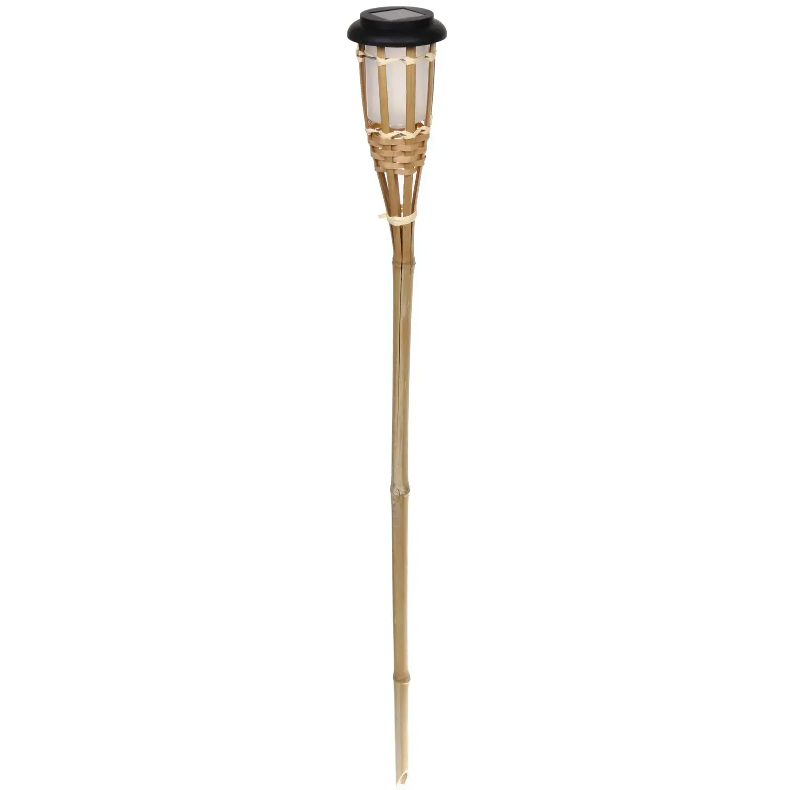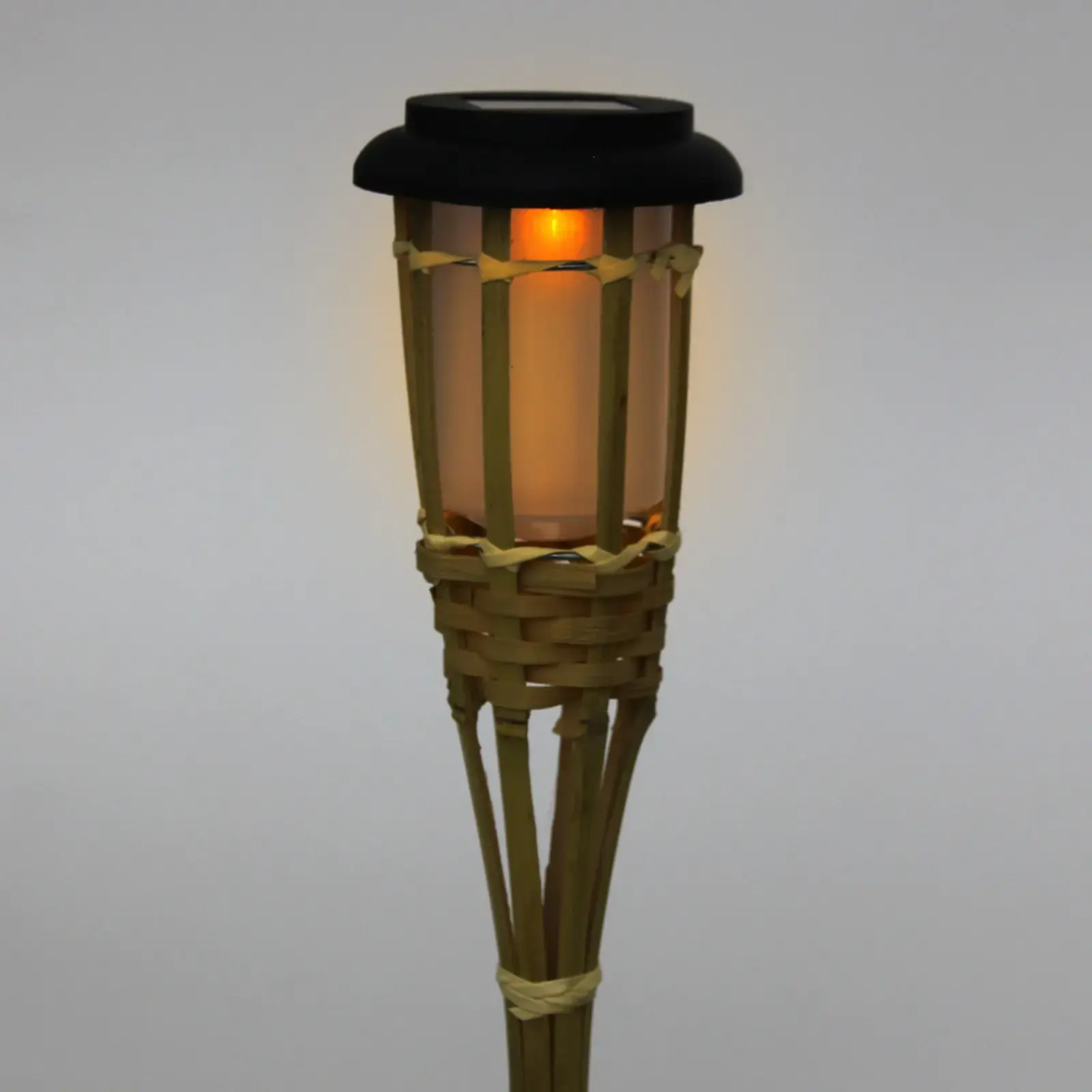 Фонарь выполнен из бамбука и пластика, что обеспечивает его легкость и устойчивость к внешним условиям. Высота фонаря составляет 88 см, что делает его заметным элементом декора. Солнечная панель, расположенная на верхней части, эффективно заряжает фонарь в течение дня, обеспечивая его работу в ночное время.