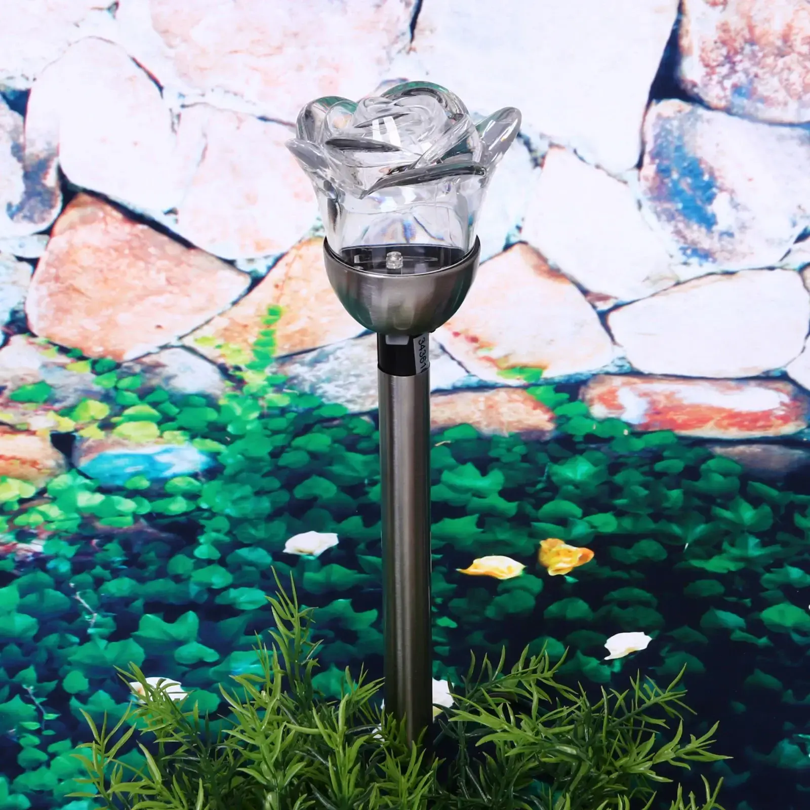 Фонарь имеет размеры 36*8 см и доступен в трёх цветах, что позволяет выбрать наиболее подходящий вариант для вашего сада. Его металлическое основание обеспечивает надежность и долговечность, а прозрачные лепестки создают эффект реалистичности и красоты. Не упустите возможность сделать ваш сад поистине сказочным!