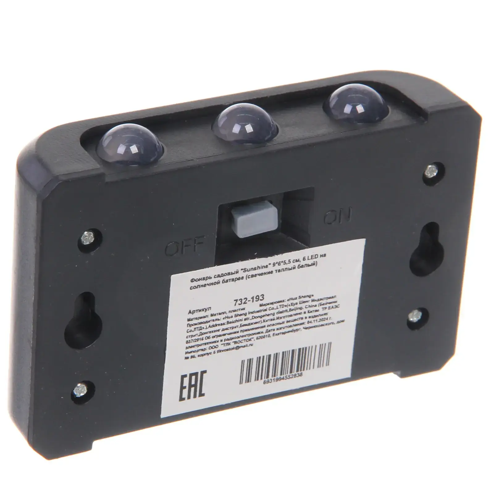 Фонарь выполнен из качественного пластика и металла, что обеспечивает его долговечность и устойчивость к внешним воздействиям. Размеры фонаря составляют 9х6,5 см, а его форма с закругленными углами делает его безопасным для использования в любых условиях. С фонарем «Sunshine» ваш сад будет светиться даже в самые темные ночи!