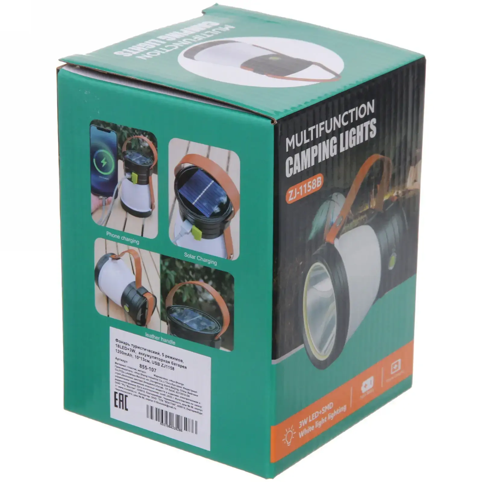 Фонарь выполнен из качественных материалов: металл и пластик, что обеспечивает его долговечность. Он имеет стильный дизайн с черными и зелеными элементами, что делает его не только функциональным, но и привлекательным. Не упустите возможность сделать ваш отдых более комфортным с этим многофункциональным фонарем!