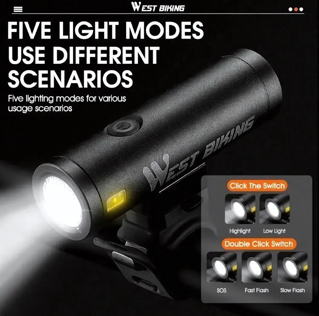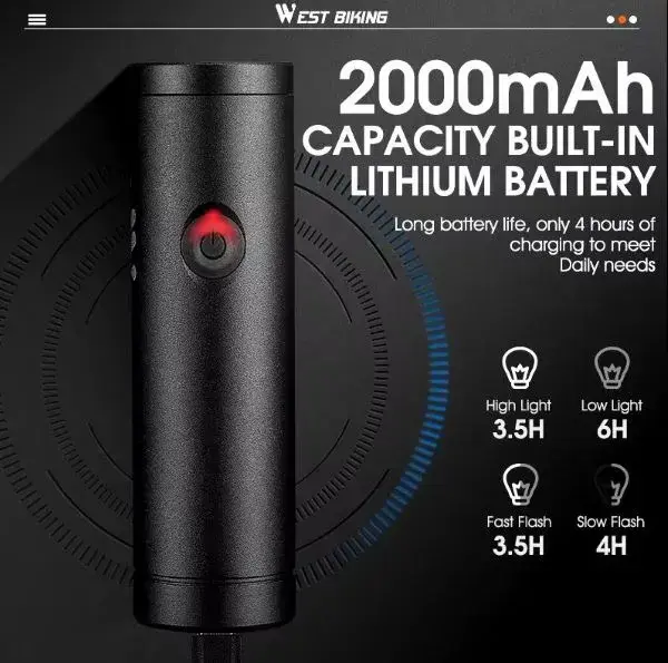 Создайте идеальные условия для безопасной ночной езды с фонарем West Biking YP0701332. Его яркость в 500 люмен освещает дорогу на 200 метров вперед, а водонепроницаемый корпус IPX5 гарантирует надежную работу в любых погодных условиях.