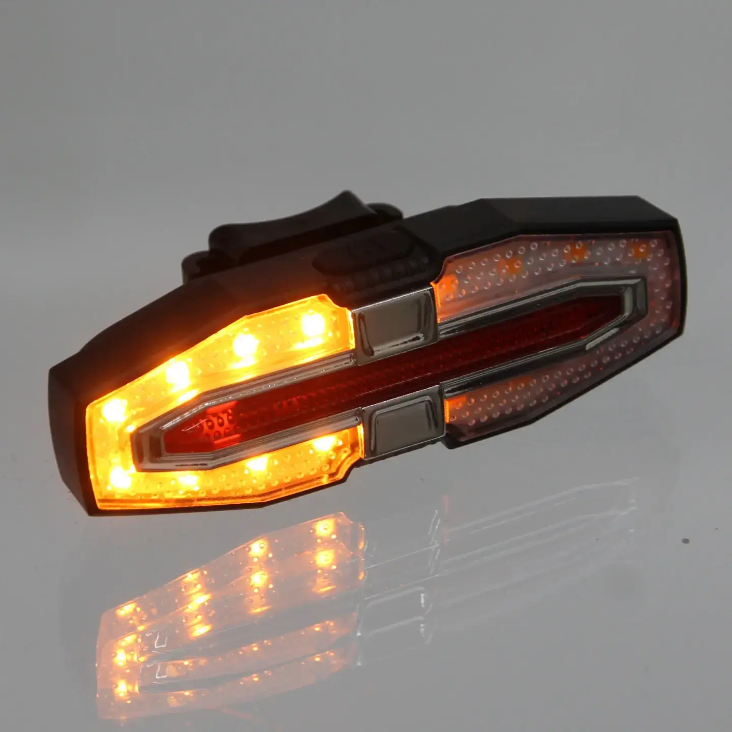 Задний фонарь с интеллектуальным управлением обеспечивает видимость в любых условиях. Беспроводной пульт позволяет активировать поворотники и менять режимы освещения, не отрывая рук от руля.