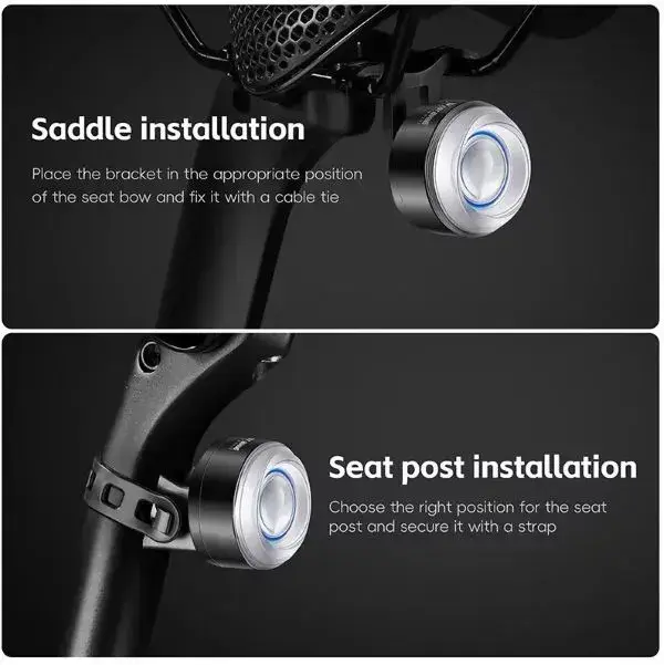 Фонарь легко устанавливается на любой велосипед благодаря двум способам крепления, что обеспечивает его совместимость с различными моделями. Он подходит как для городских поездок, так и для длительных путешествий. С помощью простого прикосновения вы можете активировать фонарь, а функция автоматического отключения через 90 секунд бездействия добавляет удобства в использовании.