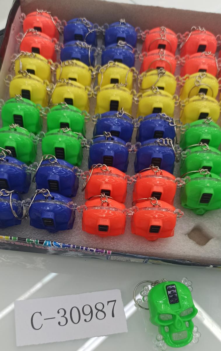 Этот пластиковый брелок в форме черепа с встроенным фонариком — незаменимый помощник и стильное дополнение к вашим ключам, рюкзаку или сумке. Он прост в использовании: достаточно нажать кнопку, чтобы включить яркий свет и быстро найти нужный предмет в темноте.