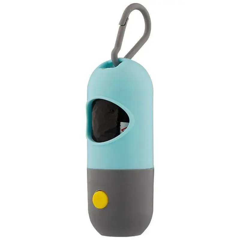 Практичный контейнер с карабином обеспечит быстрый доступ к гигиеническим пакетам или спреям во время прогулки. Легко крепится к сумке или поясному ремню благодаря металлическому крючку.