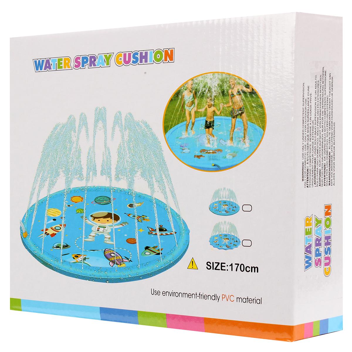 Круглая форма диаметром 170 см с ярким дизайном морской тематики. В комплекте 6 водяных форсунок, создающих эффект «дождевой завесы». Материал выдерживает вес до 80 кг благодаря трёхслойной структуре ПВХ.