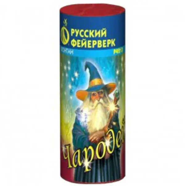 Фонтан «Чародей» представлен в цилиндрической упаковке с красным и синим цветами, что делает его привлекательным на вид. На упаковке изображен волшебник, который добавляет магии в ваш праздник. Этот фейерверк станет отличным дополнением к любому торжеству, создавая атмосферу волшебства и радости.
