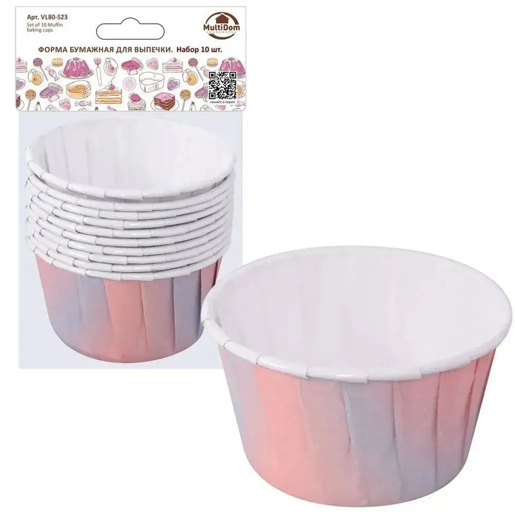 Набор из 10 профессиональных бумажных форм для создания аппетитных кексов, маффинов и капкейков. Градиентный розово-сиреневый дизайн с вертикальной текстурой превратит обычную выпечку в кулинарный шедевр.