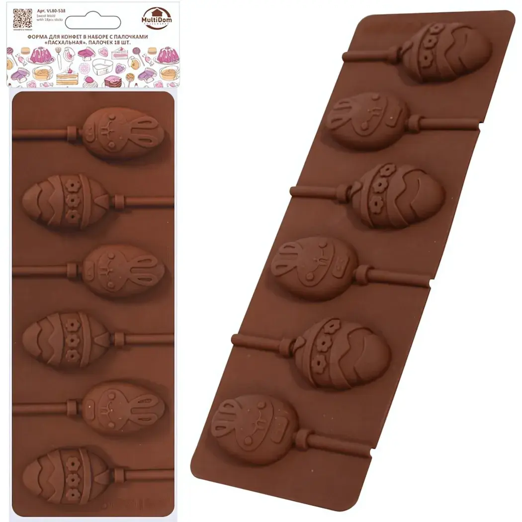 Форма для конфет силиконовая «Пасхальная», 6 фигурок, термостойкая -40/+220°C, с палочками