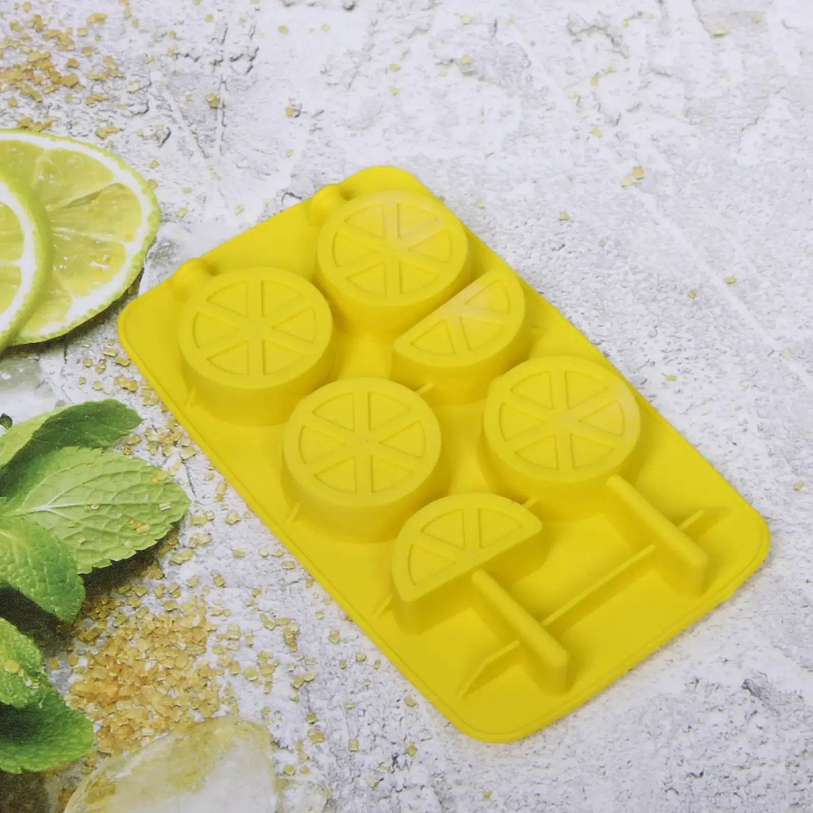 Форма имеет размеры 20х11,5 см и выполнена из качественного силикона, что гарантирует долговечность и простоту в уходе. В комплект входят пластиковые палочки, которые помогут вам создать ледяные десерты в виде дольки лимона. Это отличный способ удивить гостей и добавить нотку креативности в ваши коктейли.