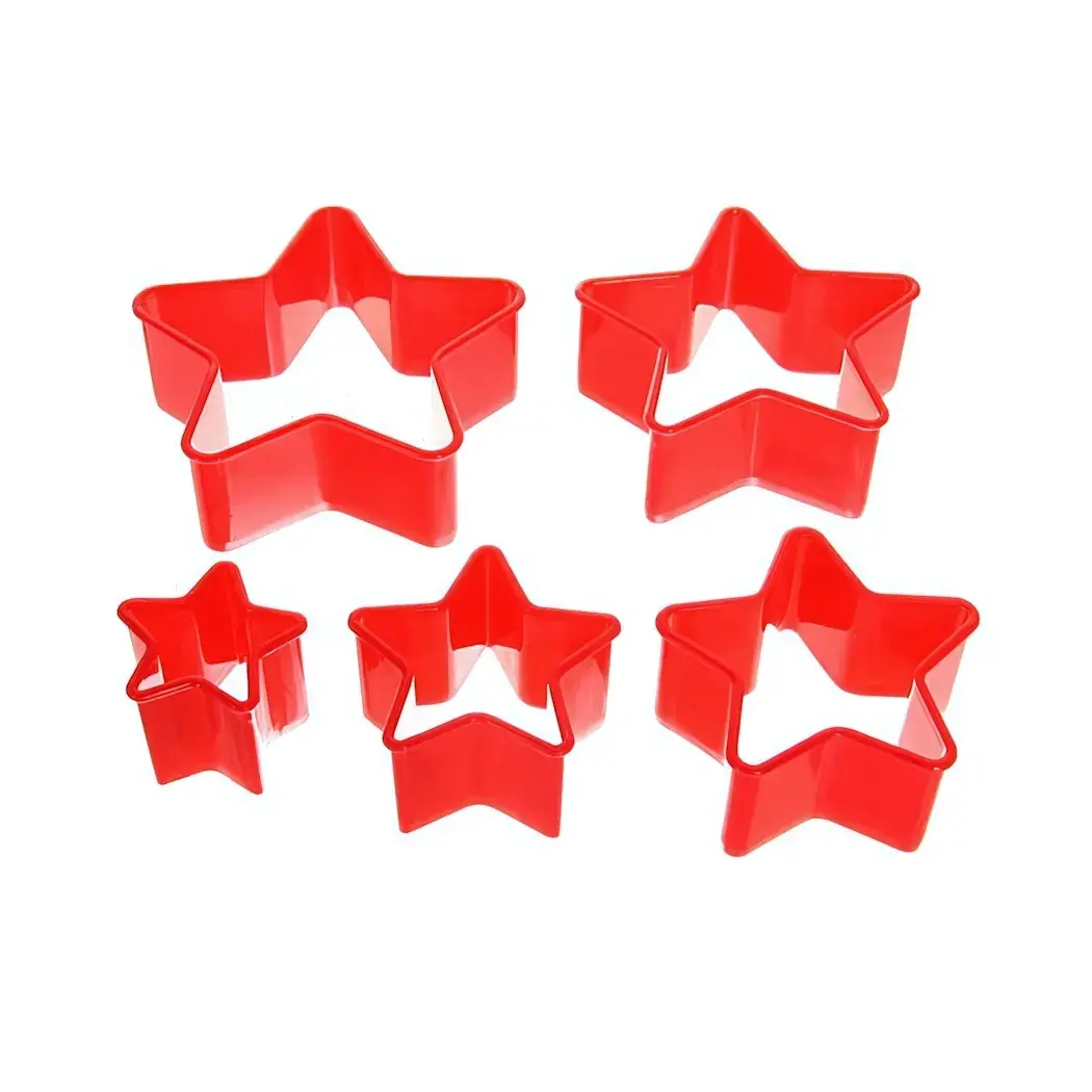Форма для печенья в виде звезды — это идеальный инструмент для тех, кто хочет быстро и легко готовить красивые кондитерские изделия. С помощью этого набора из пяти формочек вы сможете удивить своих близких и гостей на любом празднике. Яркий красный цвет форм добавит веселья в процесс выпечки, а разнообразие размеров позволит создавать печенье различной величины.