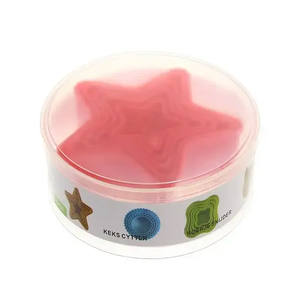 В наборе представлено пять формочек разных размеров, что позволяет вам экспериментировать с выпечкой. Формы имеют характерные контуры пятиконечных звезд, что делает их идеальными для тематических вечеринок и праздников. Упаковка формочек выполнена из прозрачного пластика, что позволяет видеть содержимое и удобно хранить их после использования.