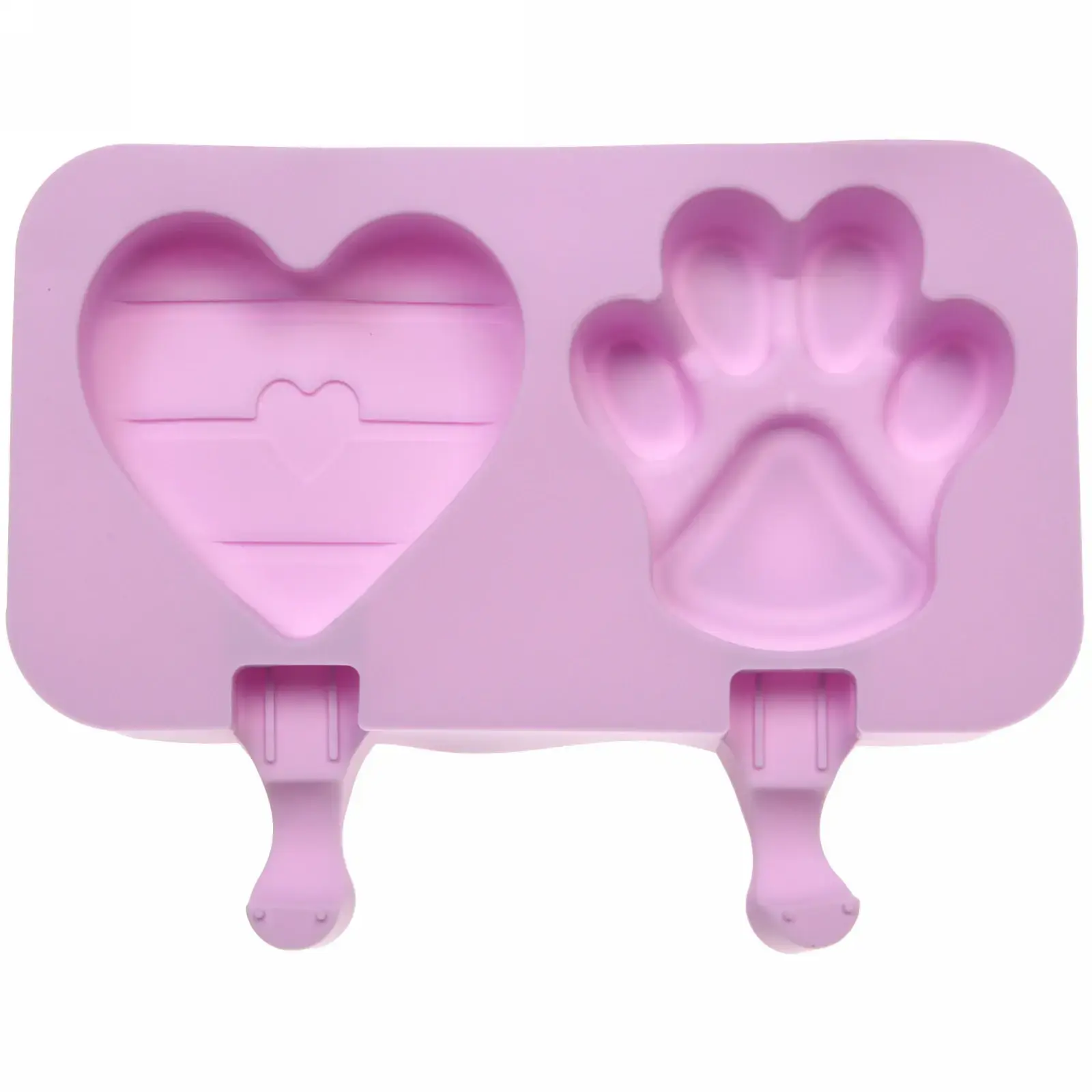 Форма для мороженого «Микс» силиконовая, 2 фигуры (сердце, лапа), розовая, 19,5х15см