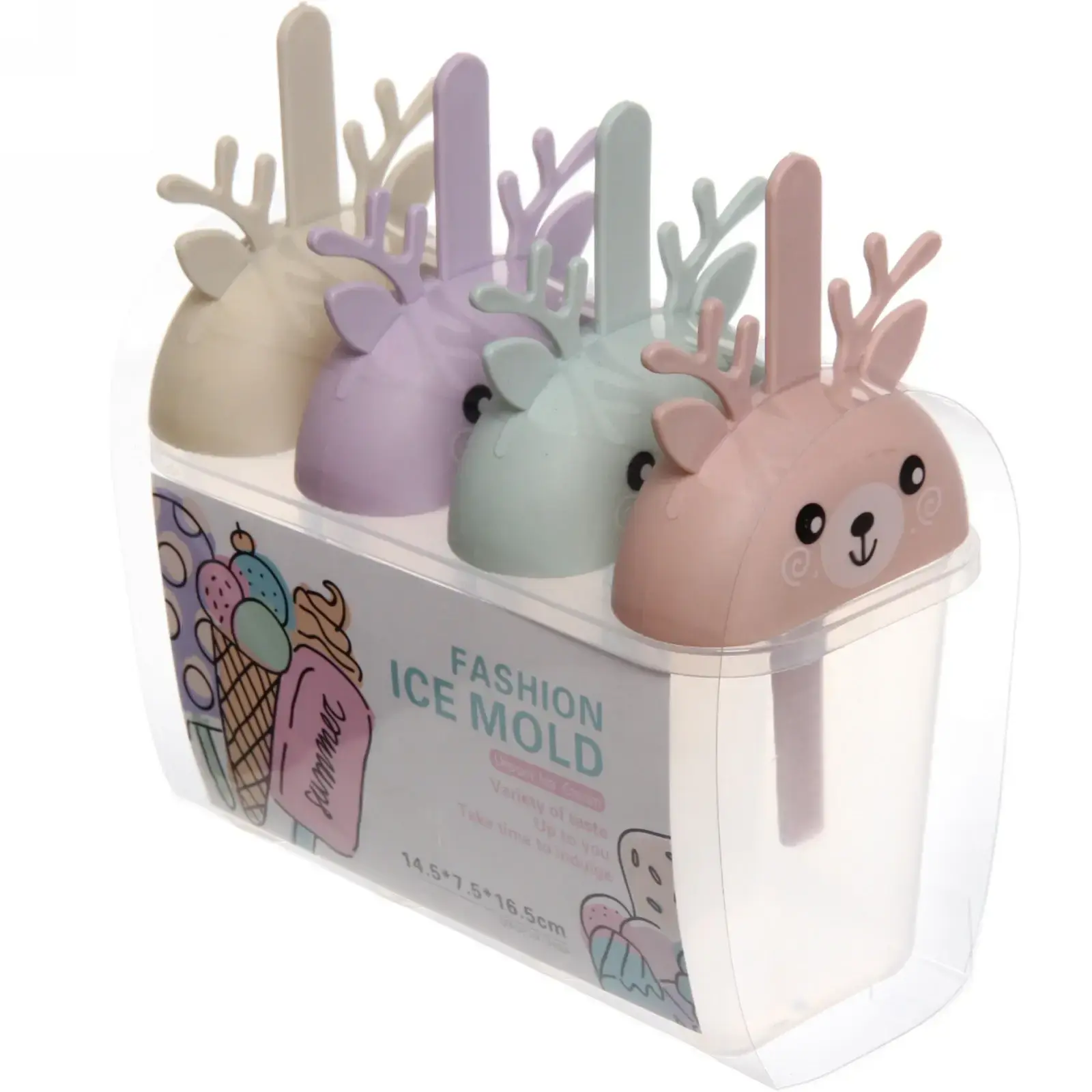 Каждая форма имеет размеры 14,5 см в длину, 5 см в ширину и 16,5 см в высоту, что делает их компактными и удобными для хранения. Формы помещены в прозрачный контейнер, который обеспечивает их устойчивость и удобство при замораживании. Эти формы не только функциональны, но и добавляют элемент веселья в процесс приготовления десертов.