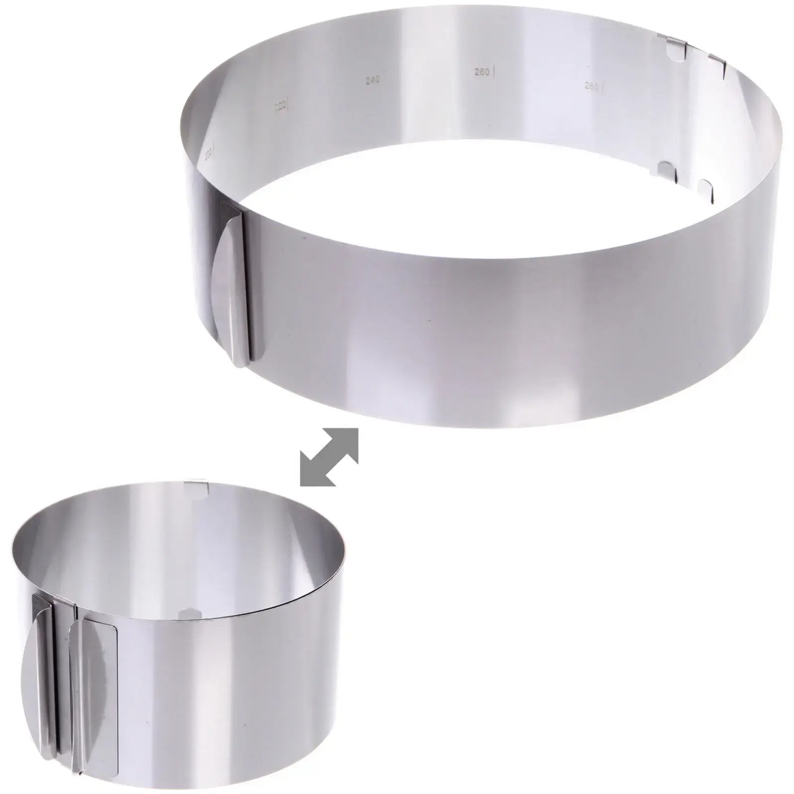 Многофункциональная форма с регулируемым диаметром от 16 до 30 см создана для профессиональной сервировки и домашнего кулинарного творчества. Металлическая конструкция с точной измерительной шкалой позволяет легко контролировать размер блюд.
