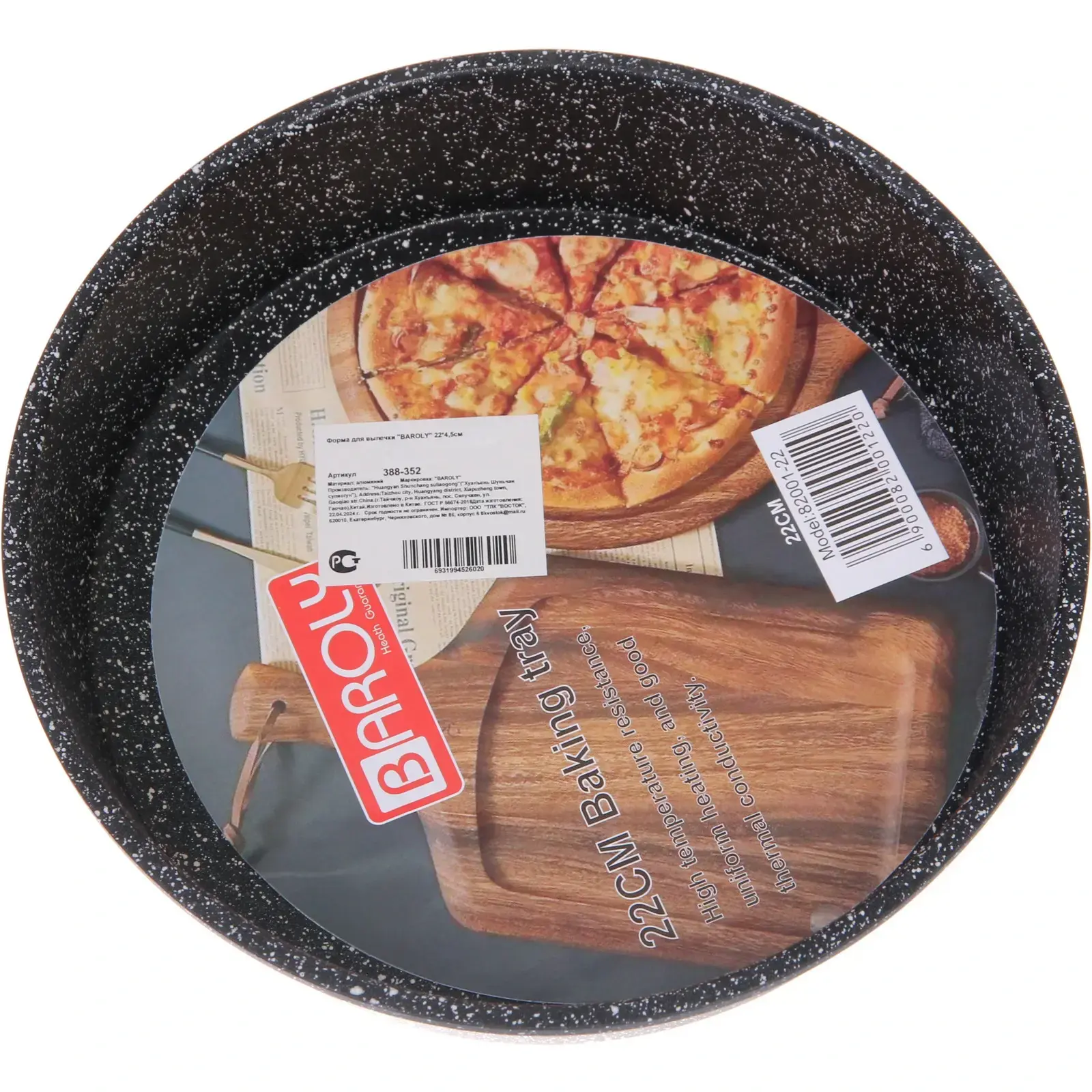 - Точный размер 22 см в диаметре — оптимален для стандартных духовок