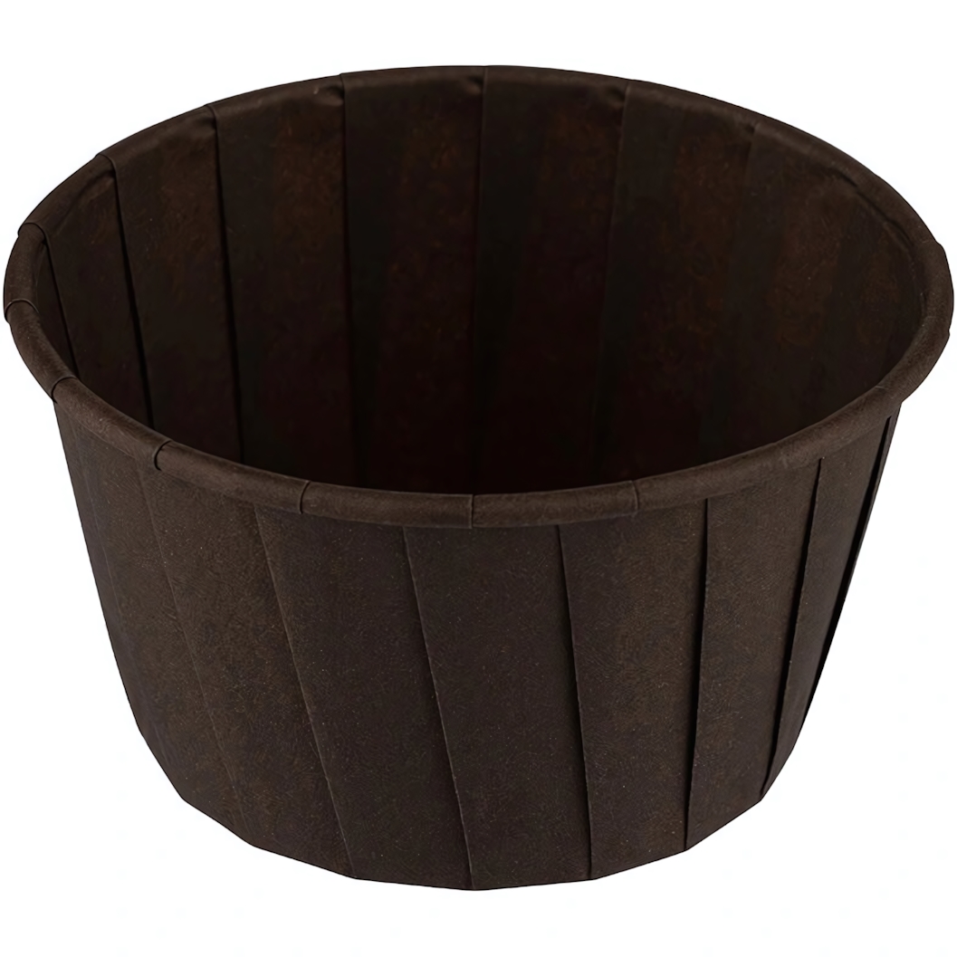 Каждая форма имеет стандартный размер: 5 см в диаметре у основания, 6,5 см по верхнему краю и высоту 4 см. Такой объем идеален для создания порционной выпечки. Благодаря вертикальным складкам по бокам и слегка загнутому наружу верхнему краю, формы устойчивы и удобны для наполнения тестом.