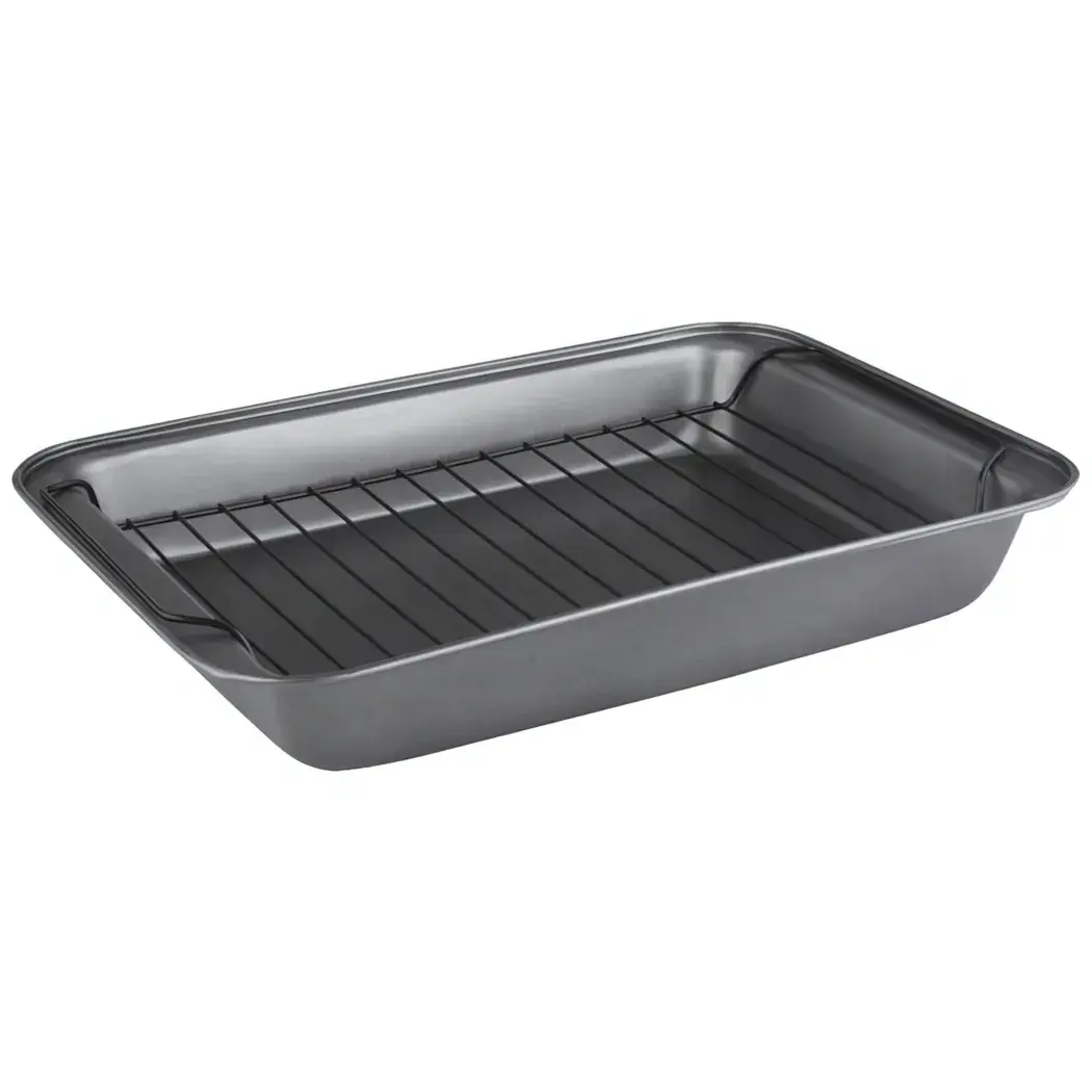 Эта форма для запекания станет незаменимым помощником для любителей готовить. Благодаря высококачественному металлическому материалу и продуманному дизайну, вы сможете готовить вкусные и полезные блюда для всей семьи. Высокие бортики формы позволяют удерживать жидкости, а решетка обеспечивает равномерное прогревание продуктов, что делает процесс запекания более эффективным.