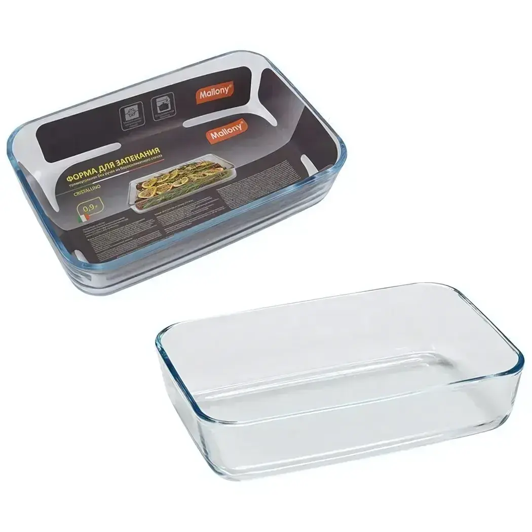 Объём 0,9 литра подходит для приготовления блюд на 2-3 порции. Утолщённые стенки из боросиликатного стекла обеспечивают равномерный нагрев, а пластиковая крышка с плотным прилеганием защищает от протекания. Компактные размеры позволяют размещать форму даже в небольших духовых шкафах.