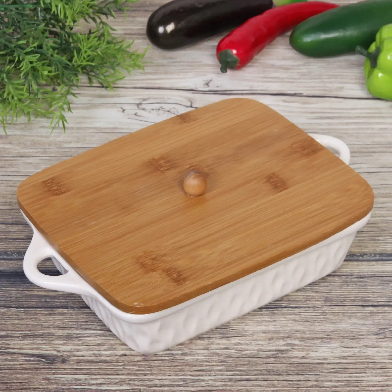 Идеальное сочетание стиля и функциональности: форма для запекания с натуральной бамбуковой крышкой станет вашим надежным помощником на кухне. Готовьте, подавайте и храните блюда в одной эстетичной посуде, сохраняющей тепло и аромат.