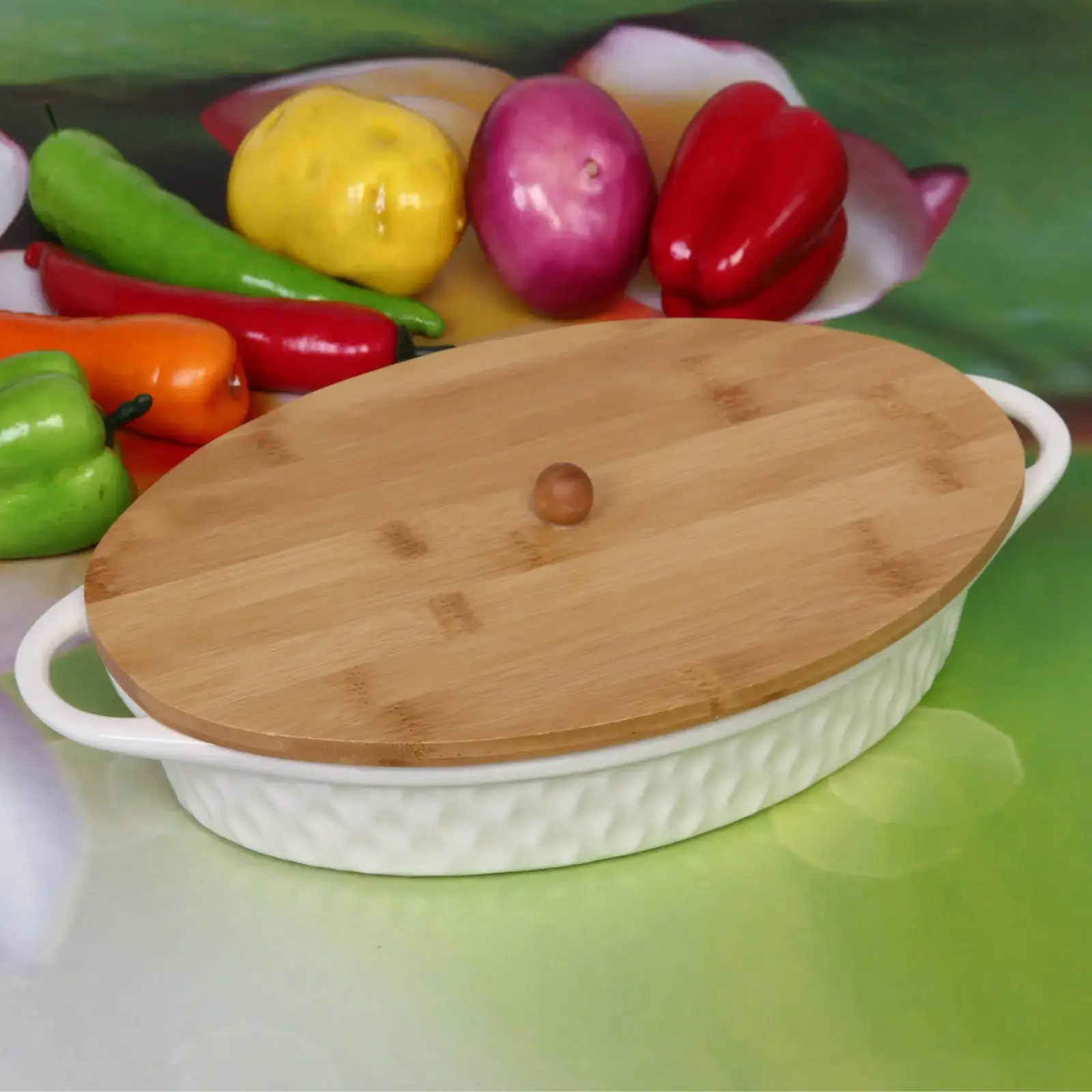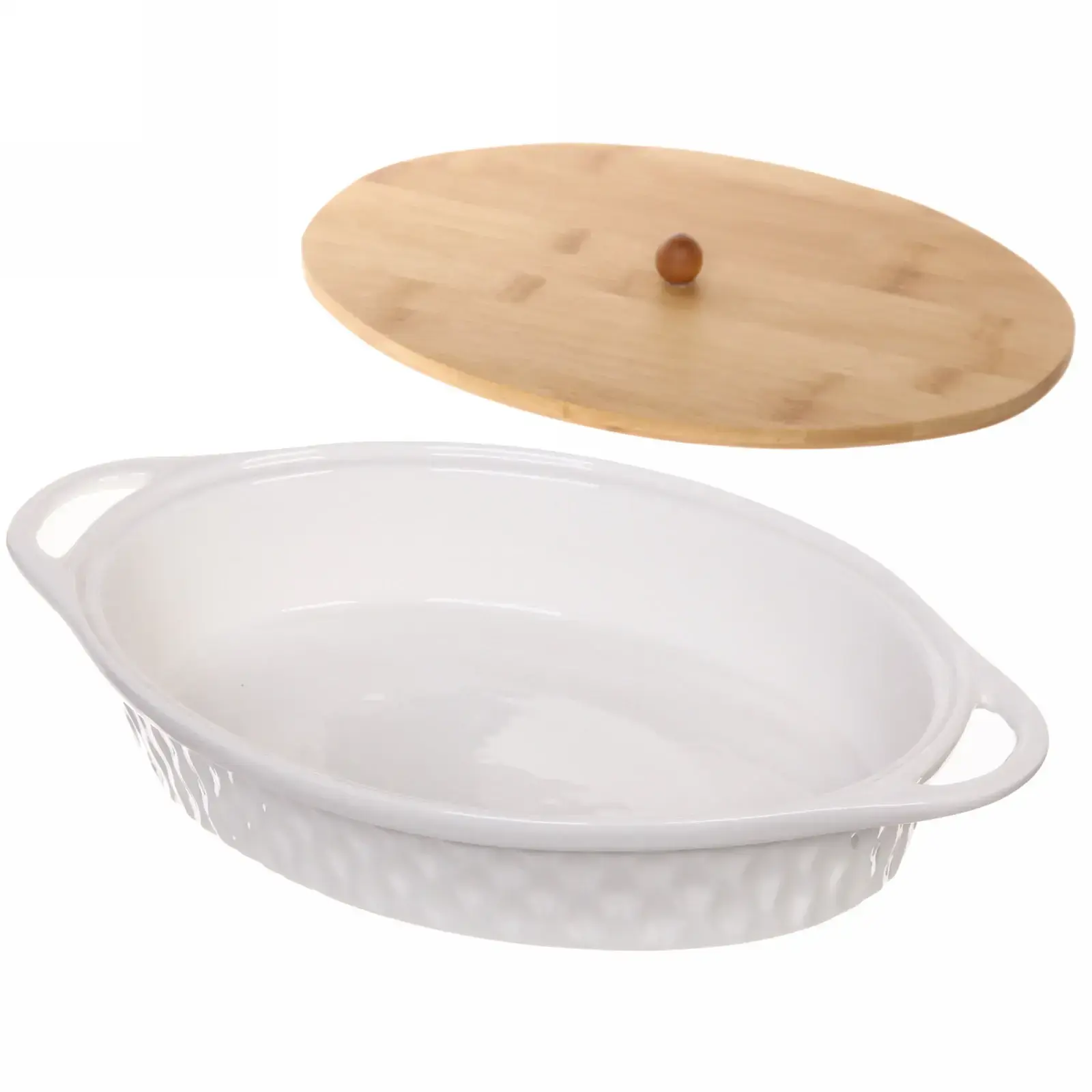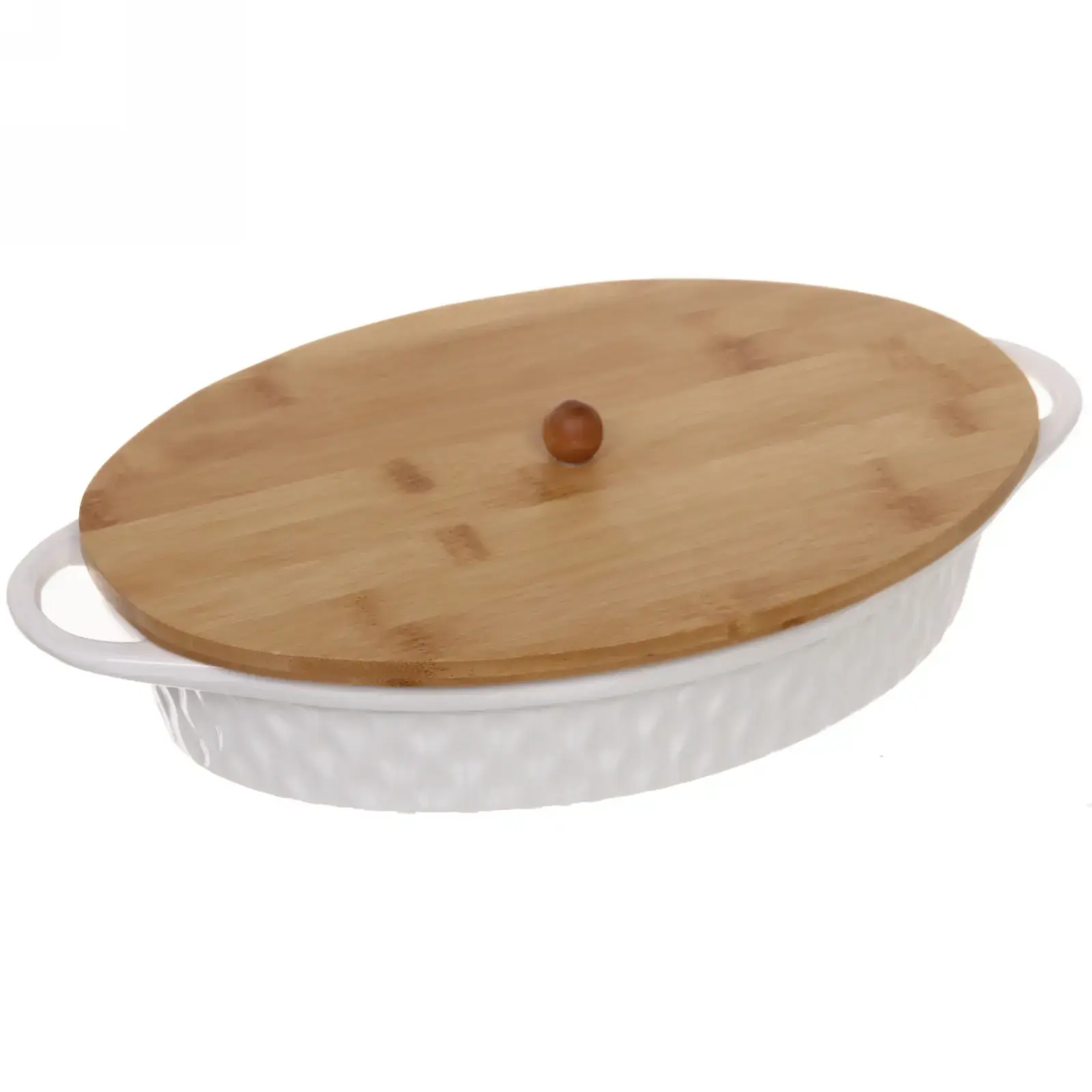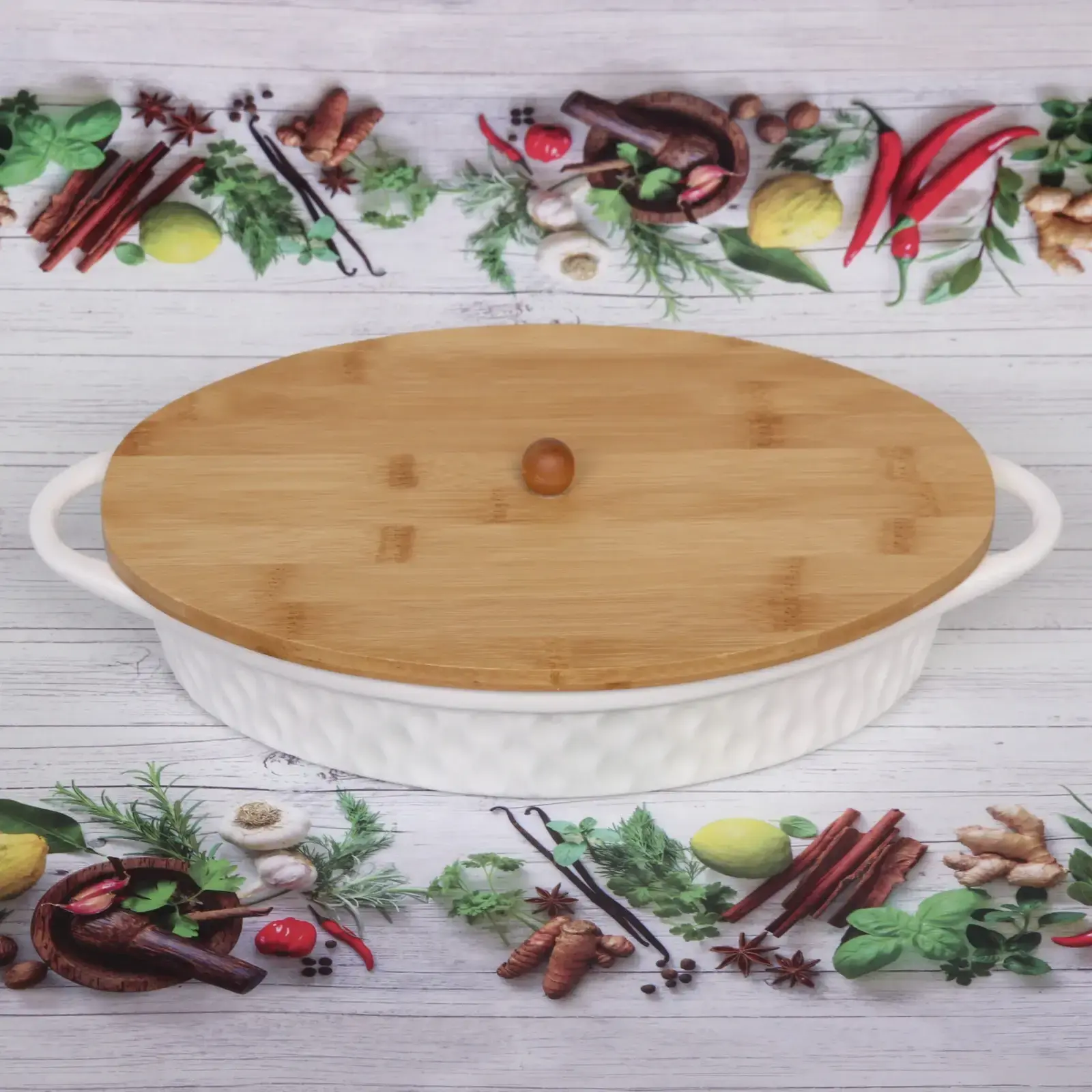 Форма для запекания «White magic» керамическая с бамбуковой крышкой, 29х20см, овальная, для духовки и сервировки