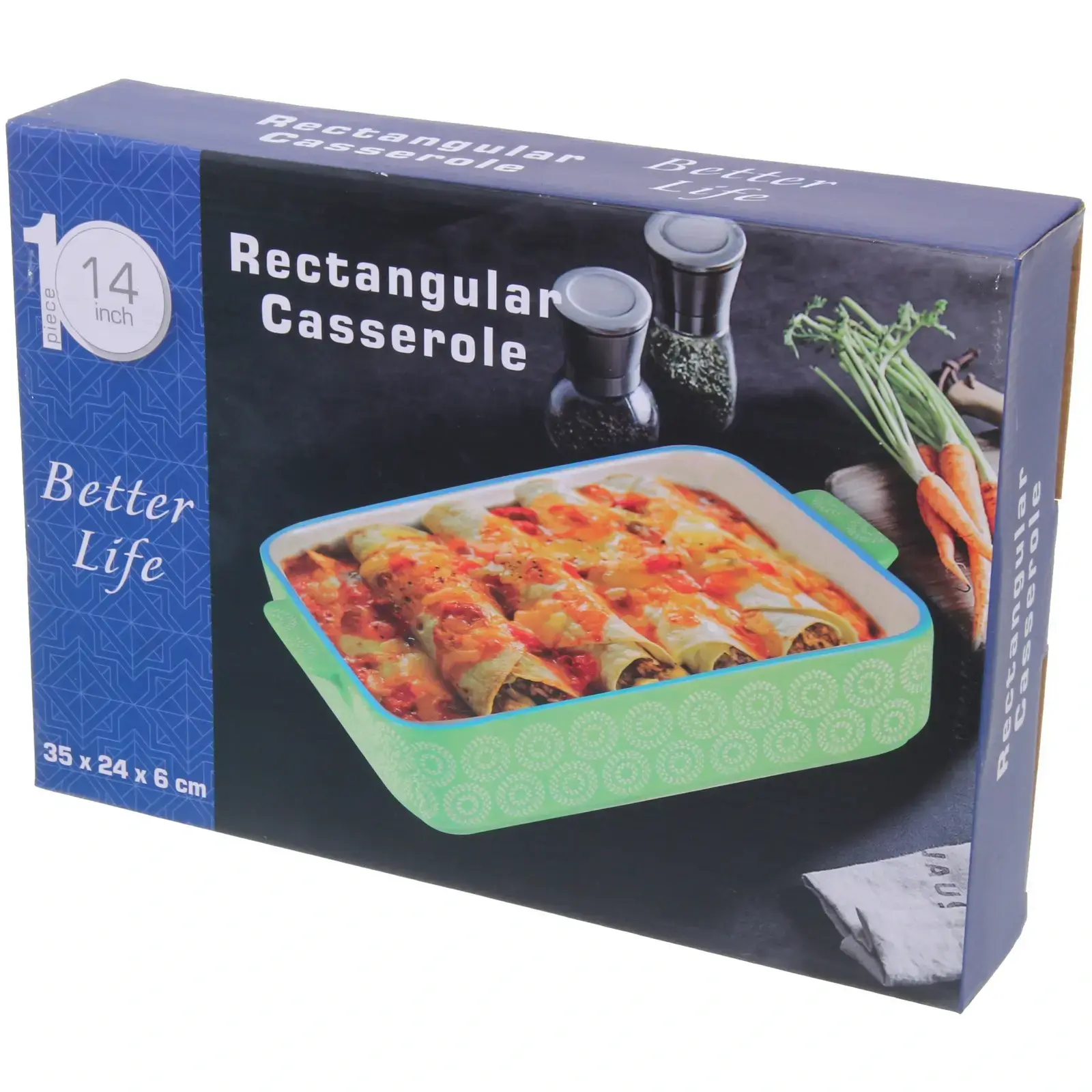 Форма имеет размеры 35х24,5х6,5 см, что позволяет готовить как небольшие, так и более объемные блюда. Удобные ручки с обеих сторон обеспечивают легкость в переноске, а гладкая внутренняя поверхность облегчает процесс мытья. Рекомендуется ставить форму в холодную духовку и избегать резких перепадов температур, чтобы продлить срок службы изделия.