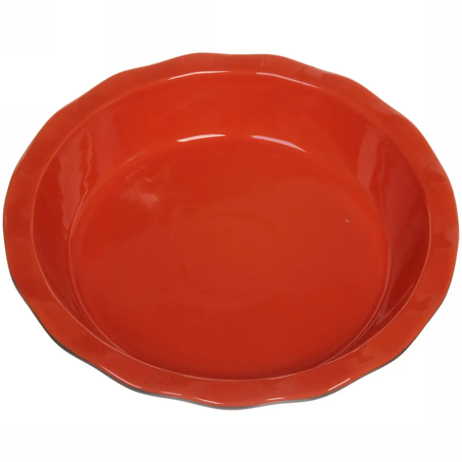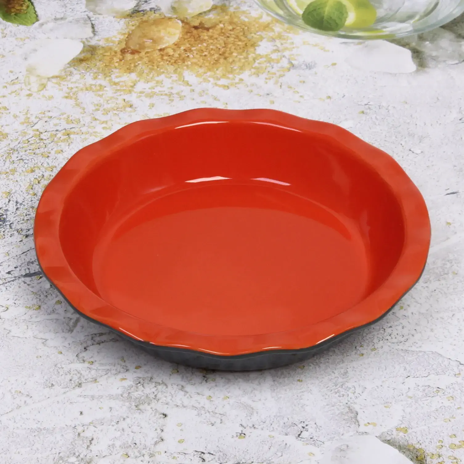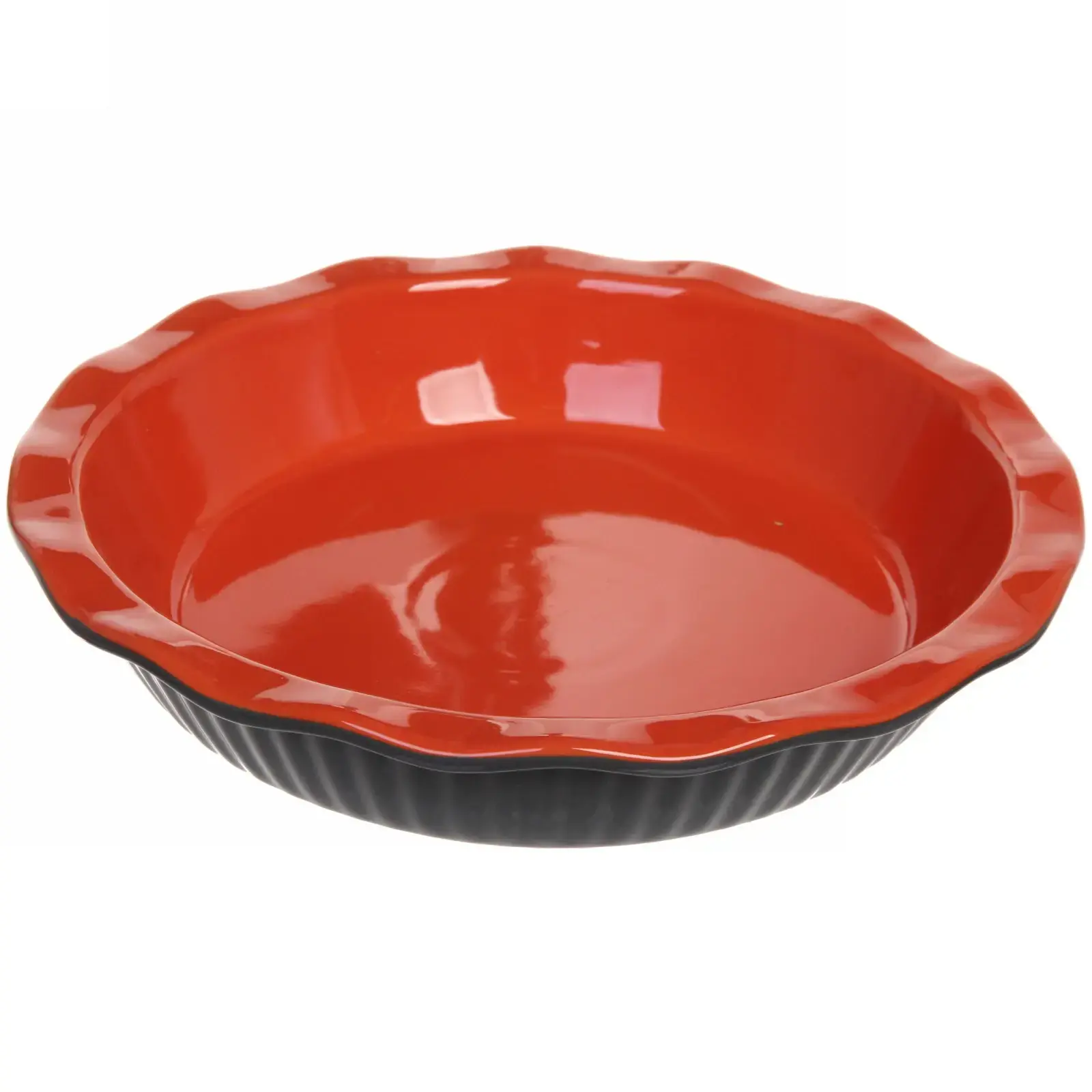 Размеры формы составляют 27 см в диаметре и 5 см в высоту, что делает ее универсальной для различных рецептов. Яркий красный цвет внутренней стороны и темно-серый внешний цвет с рифленой текстурой придают ей стильный вид. Эта форма станет не только функциональным, но и декоративным элементом вашей кухни.