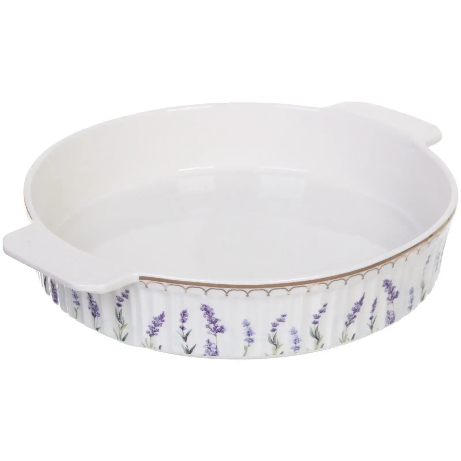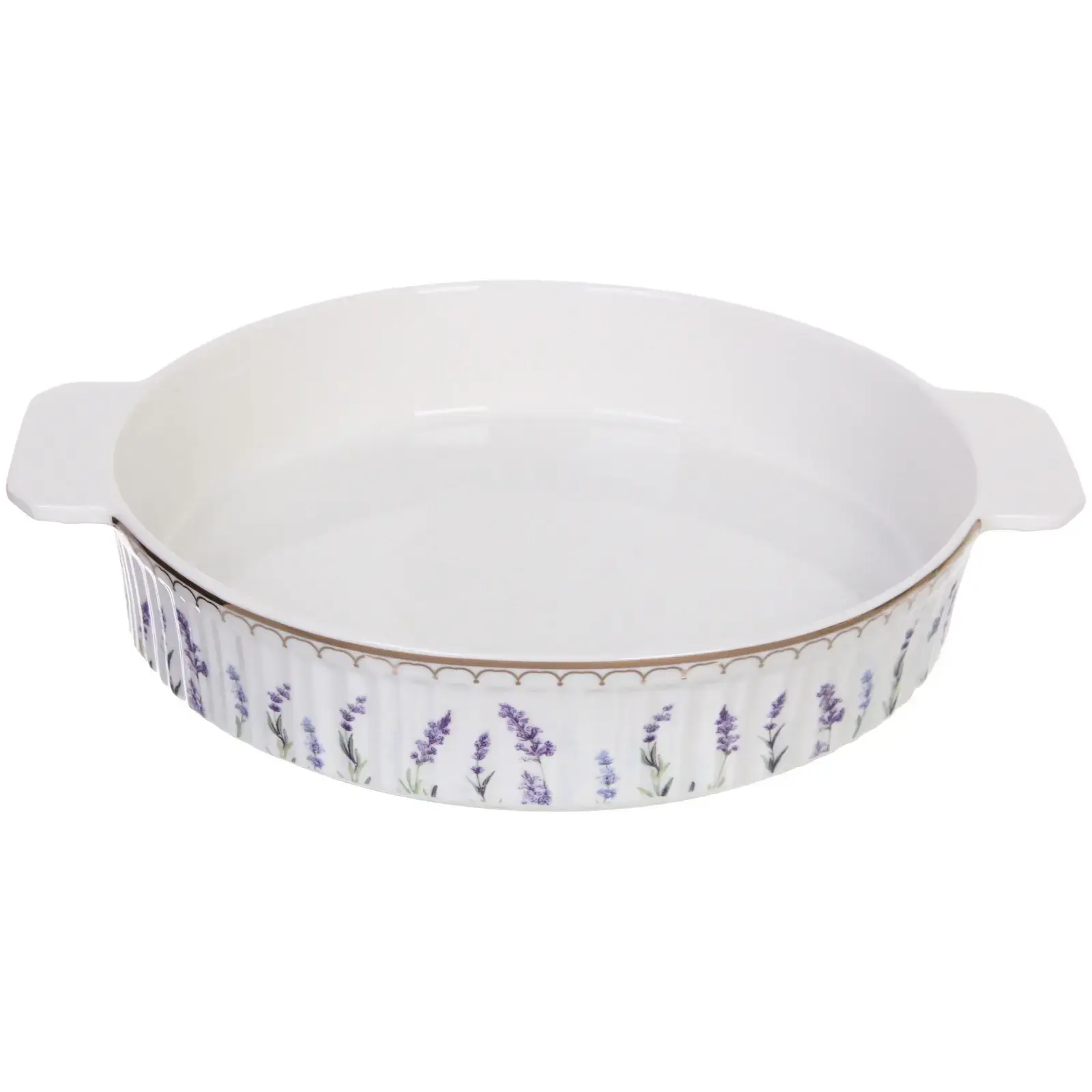 Форма выполнена из высококачественной керамики, что гарантирует ее долговечность и надежность. Белый цвет с фиолетовым цветочным узором делает ее не только функциональной, но и стильной. Она станет отличным дополнением к вашей кухонной посуде и украсит любой стол.