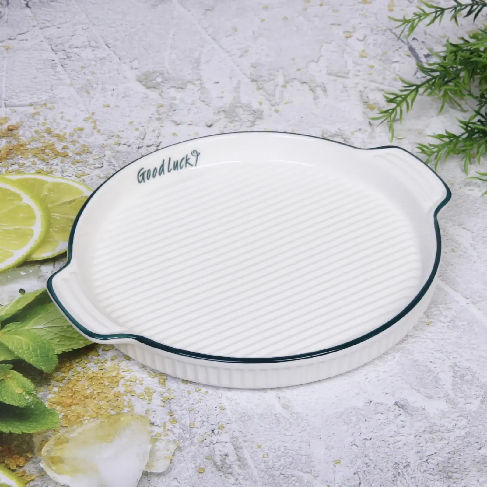 Круглая форма диаметром 24.6 см с высотой бортов 2.8 см оптимальна для порций на 4-6 человек. Белый цвет с контрастной окантовкой гармонично впишется в любой кухонный интерьер. Вес 1.2 кг обеспечивает устойчивость при переноске.