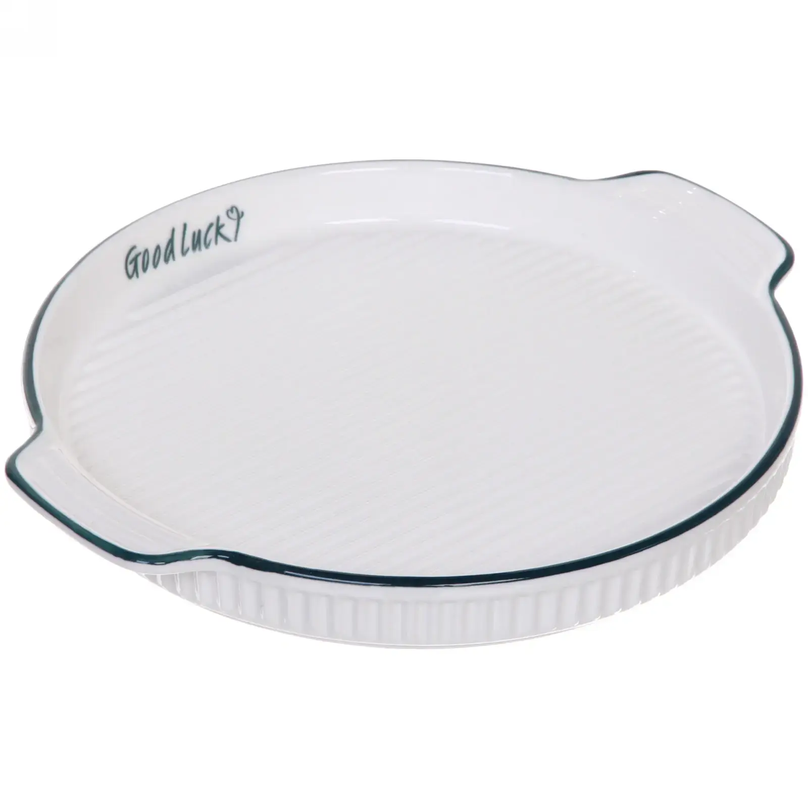 Форма для запекания «Queen», керамика, круглая, 24,6х22х2,8 см, рифленое дно, 2 ручки