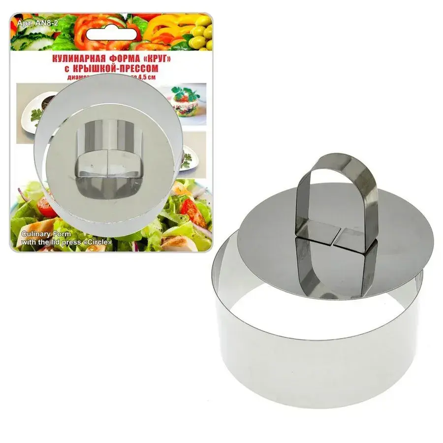 Профессиональная кондитерская форма с прессом создана для тех, кто ценит эстетику и удобство в приготовлении блюд. Уникальная конструкция позволяет быстро формировать ровные слои салатов, десертов и закусок, превращая обычные блюда в ресторанные шедевры.