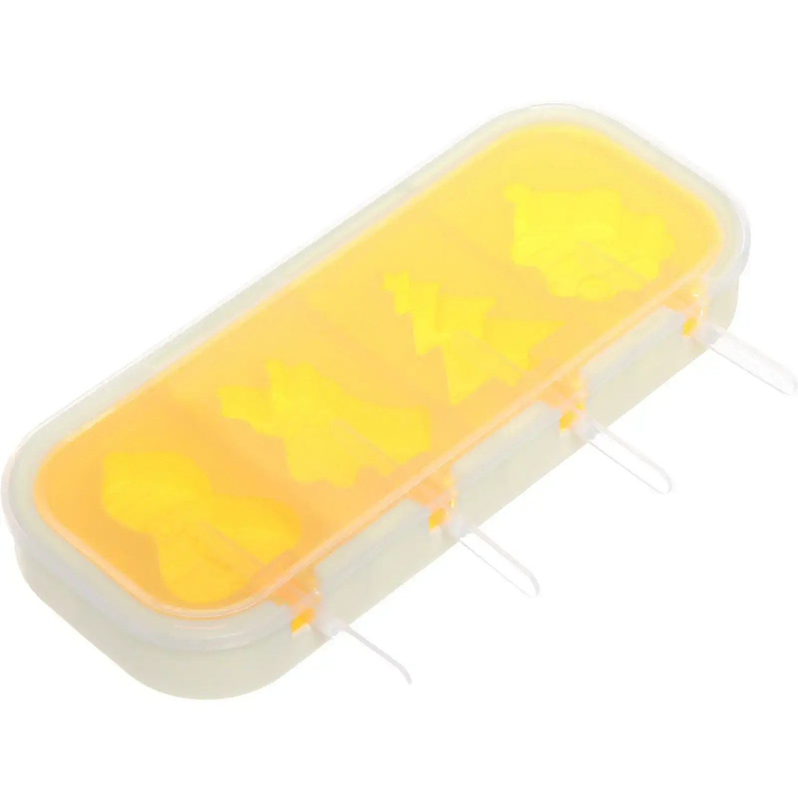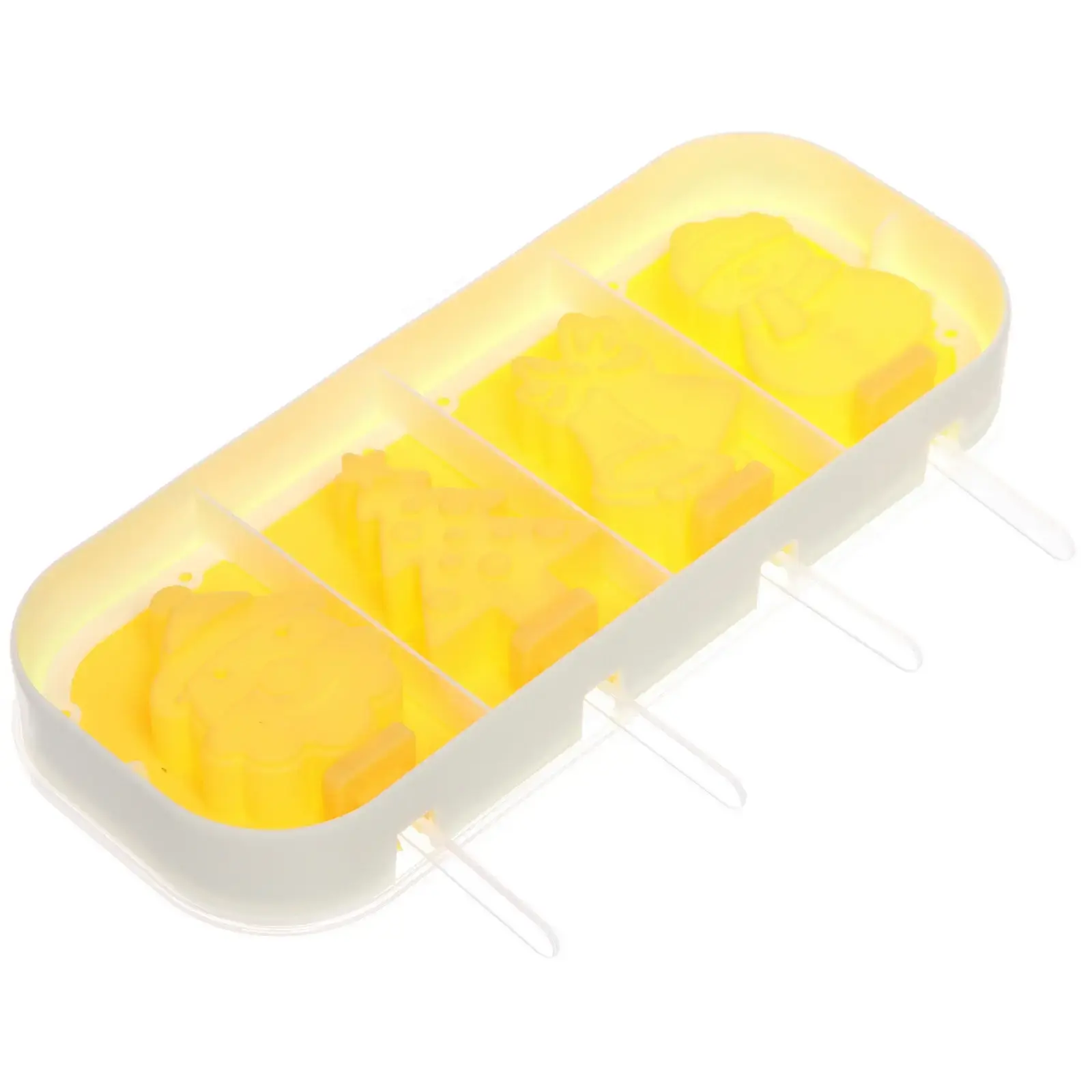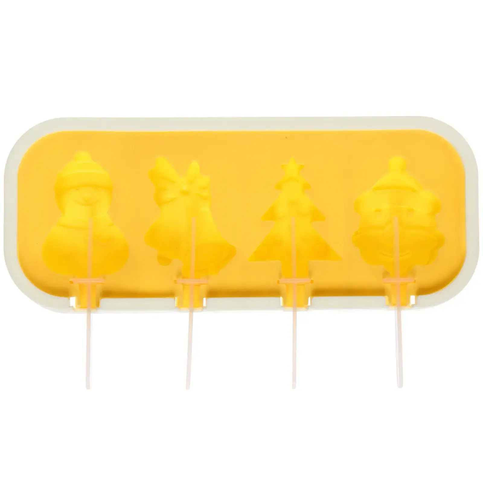 Форма состоит из двух уровней: верхнего желтого и нижнего розового. Четыре ячейки с различными праздничными формами оснащены пластиковыми палочками для удобства использования. Материал: качественный пищевой силикон, безопасный для здоровья.