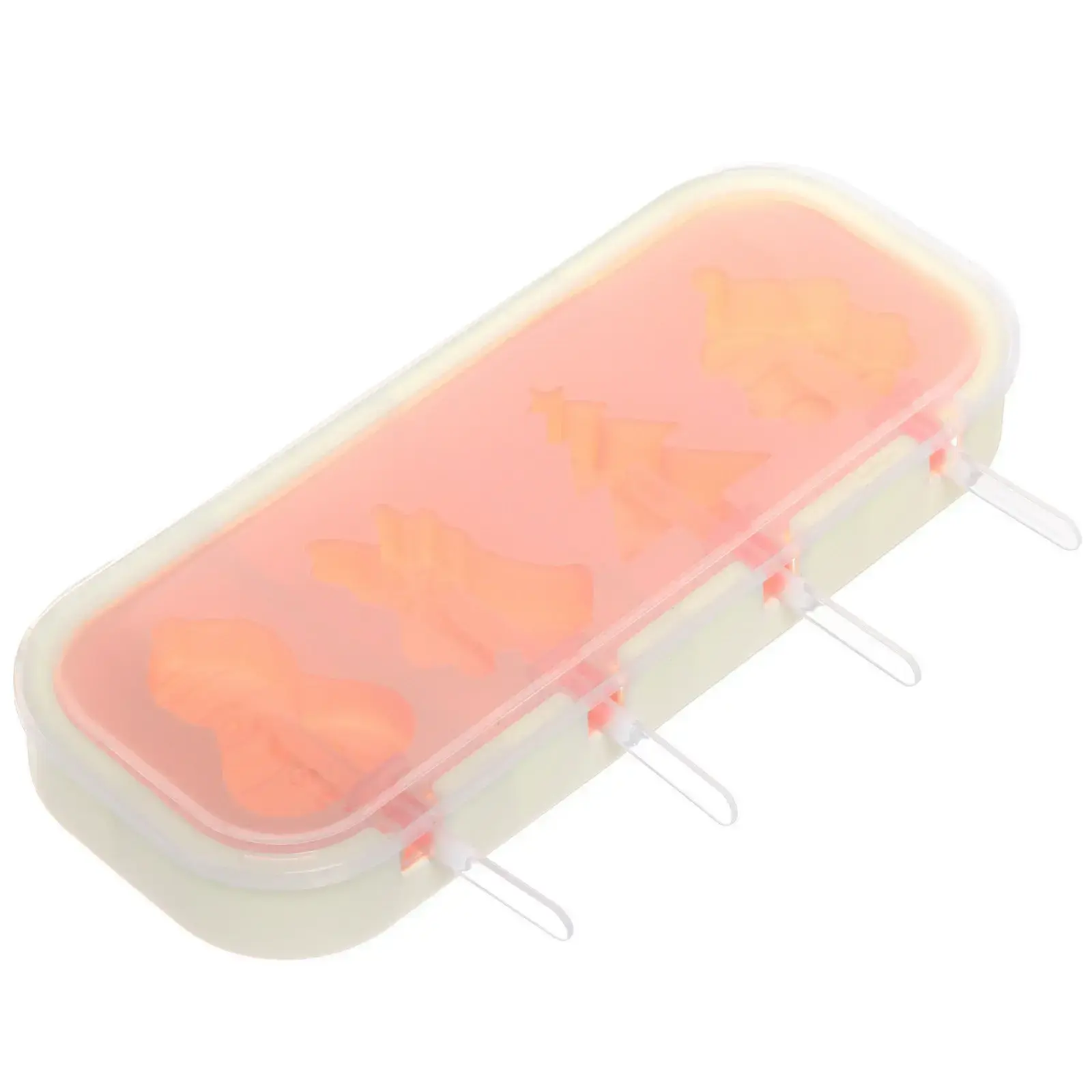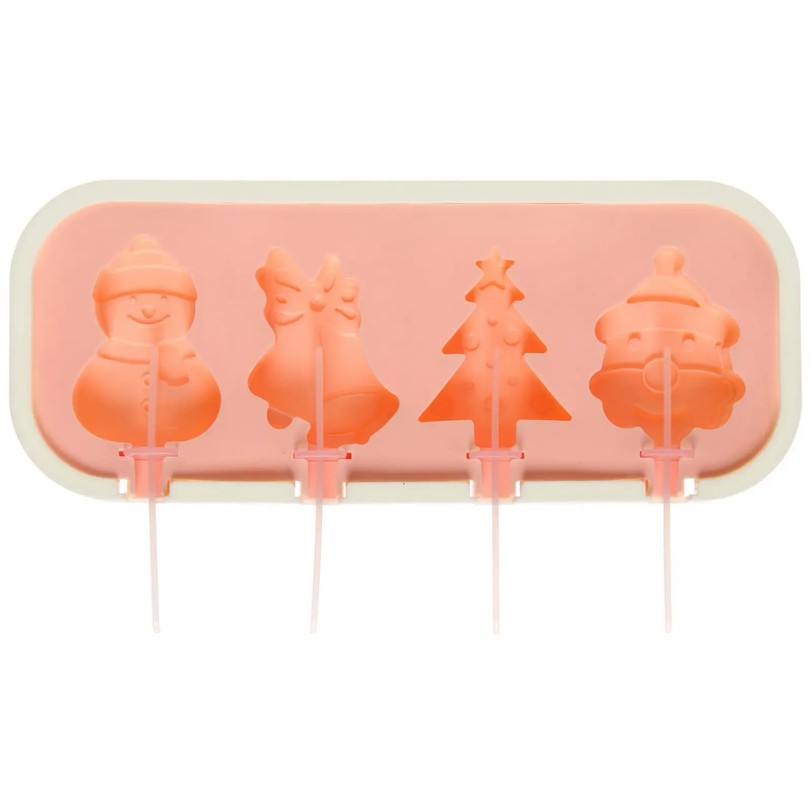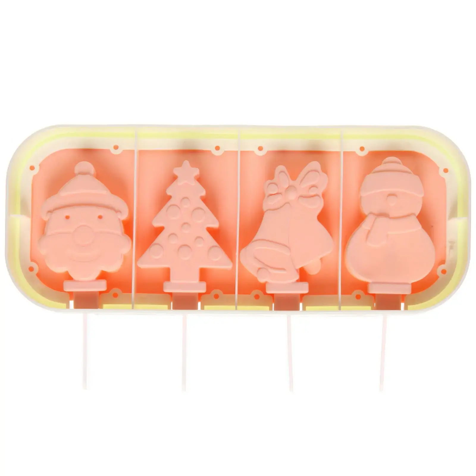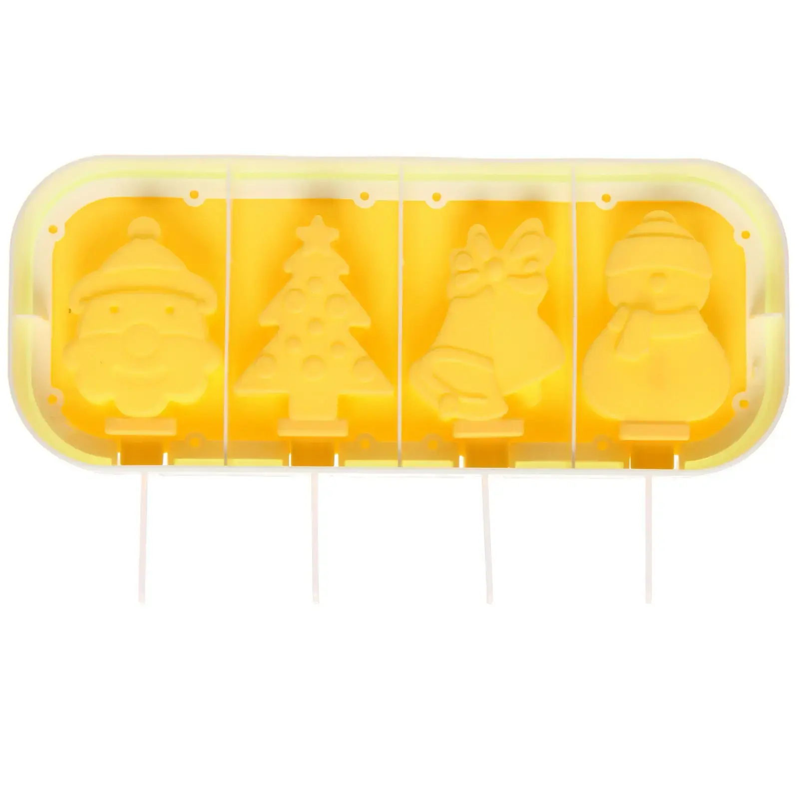 Форма состоит из двух уровней: верхнего желтого и нижнего розового. Четыре ячейки с различными праздничными формами оснащены пластиковыми палочками для удобства использования. Материал: качественный пищевой силикон, безопасный для здоровья.