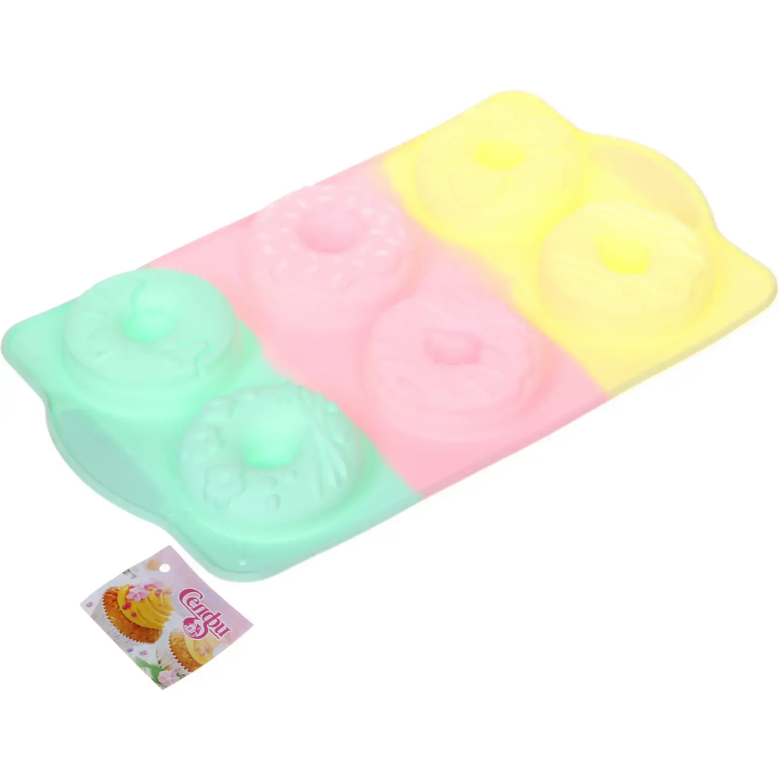 Почему стоит выбрать именно эту форму? Во-первых, она выполнена из качественного силикона, который устойчив к высоким температурам и легко очищается. Во-вторых, яркие цвета — зеленый, розовый и желтый — делают процесс выпечки более веселым и привлекательным. В-третьих, каждая ячейка имеет центральное отверстие, что позволяет создавать классические пончики с характерной формой.
