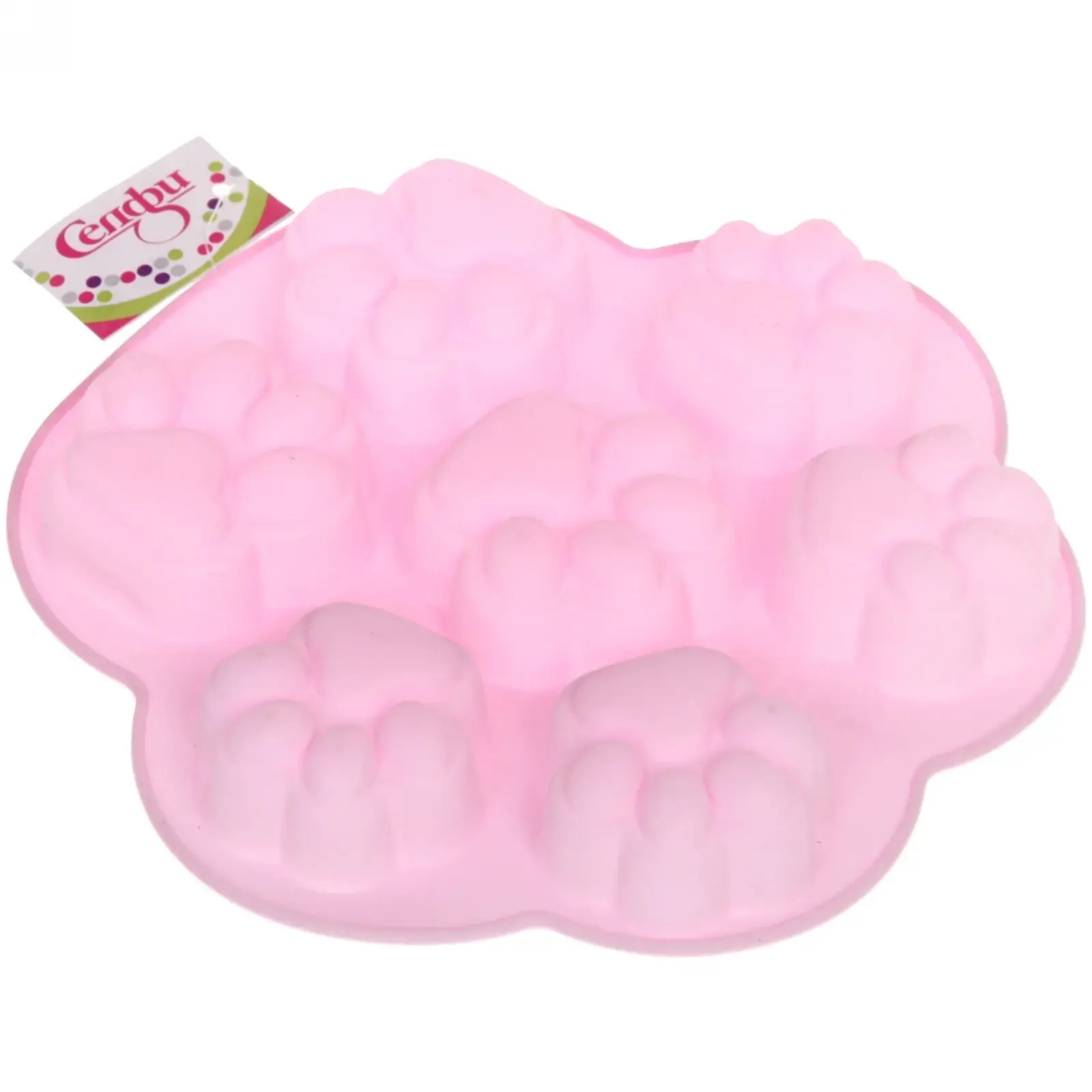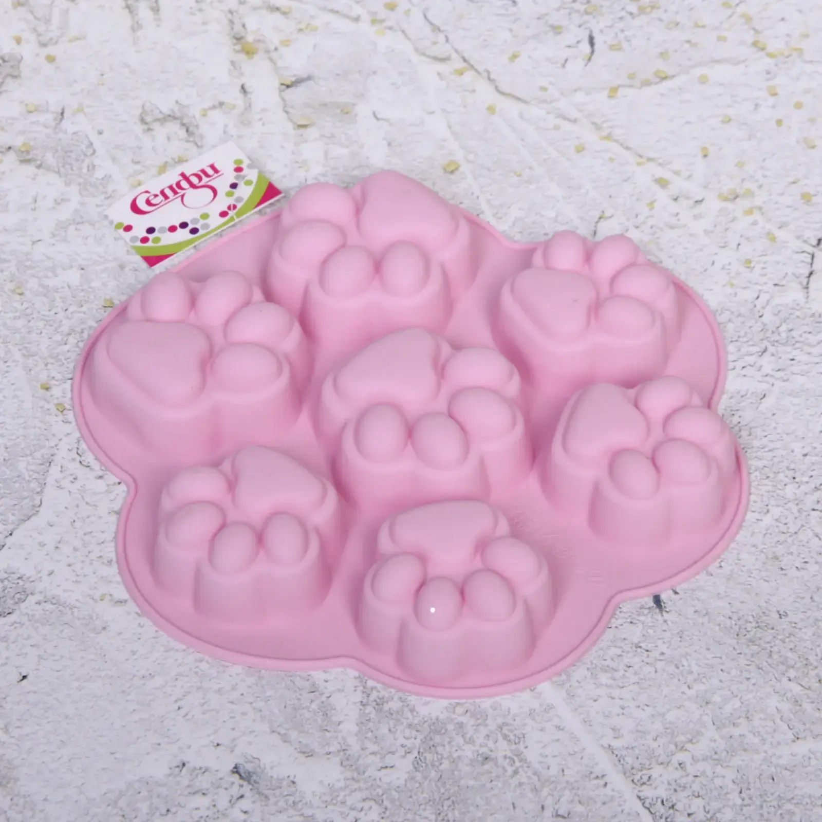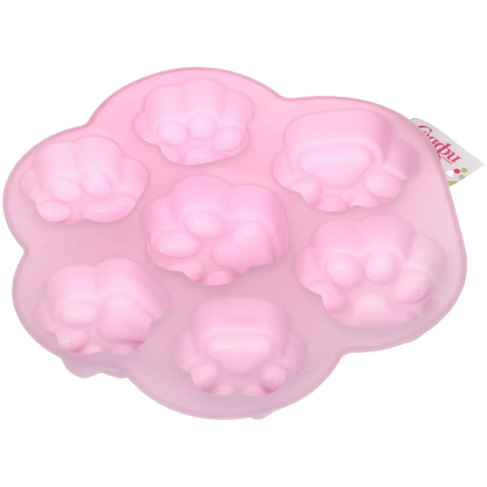 Форма силиконовая 'Лапки', 7 ячеек, 19*20.5*2.5см, розовая, для выпечки