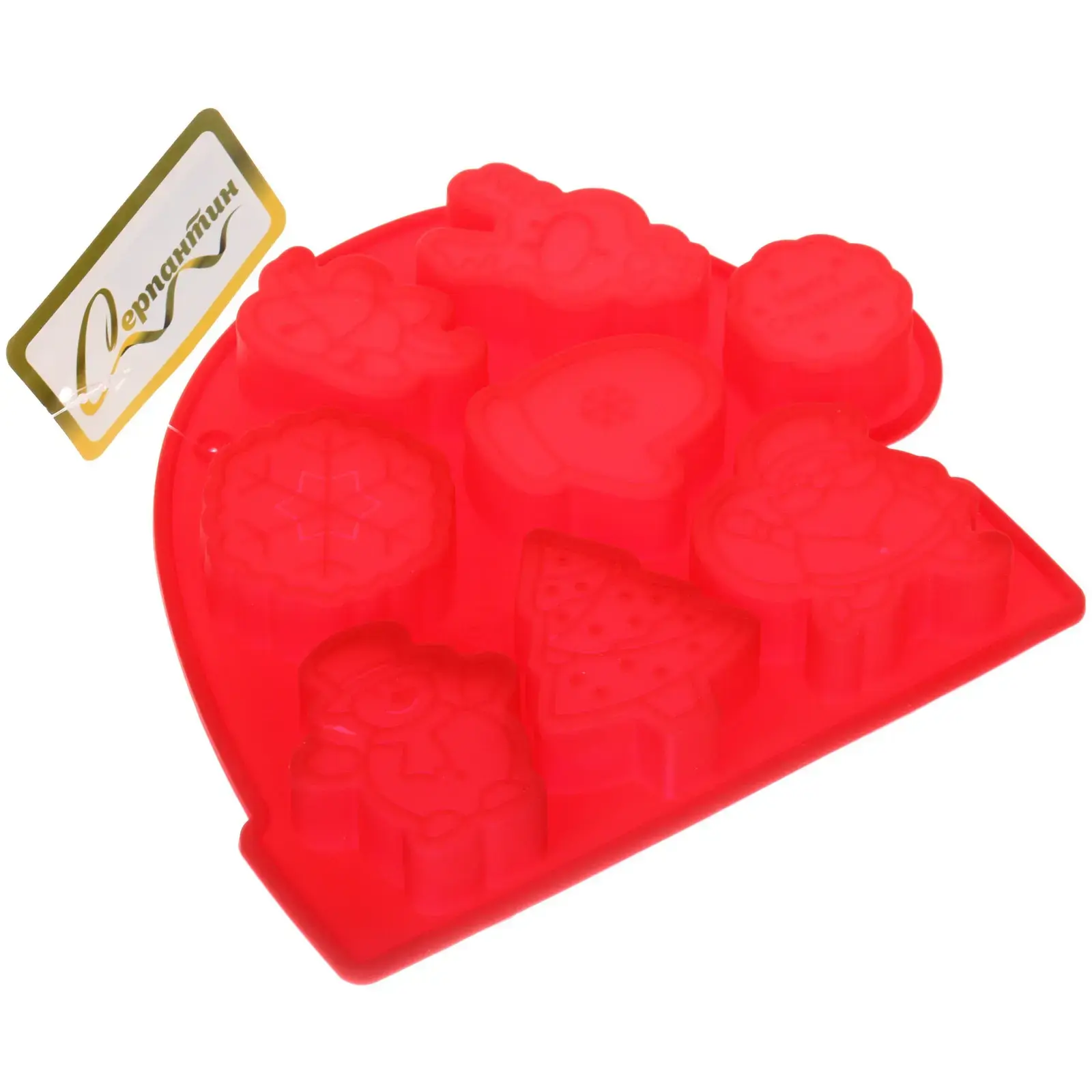 Силиконовая форма обладает множеством преимуществ: она устойчива к высоким температурам, легко очищается и не требует смазывания перед использованием. Гибкость материала позволяет легко извлекать готовые изделия, не повреждая их. Кроме того, форма имеет яркий и привлекательный дизайн, который создаст праздничное настроение на вашей кухне.