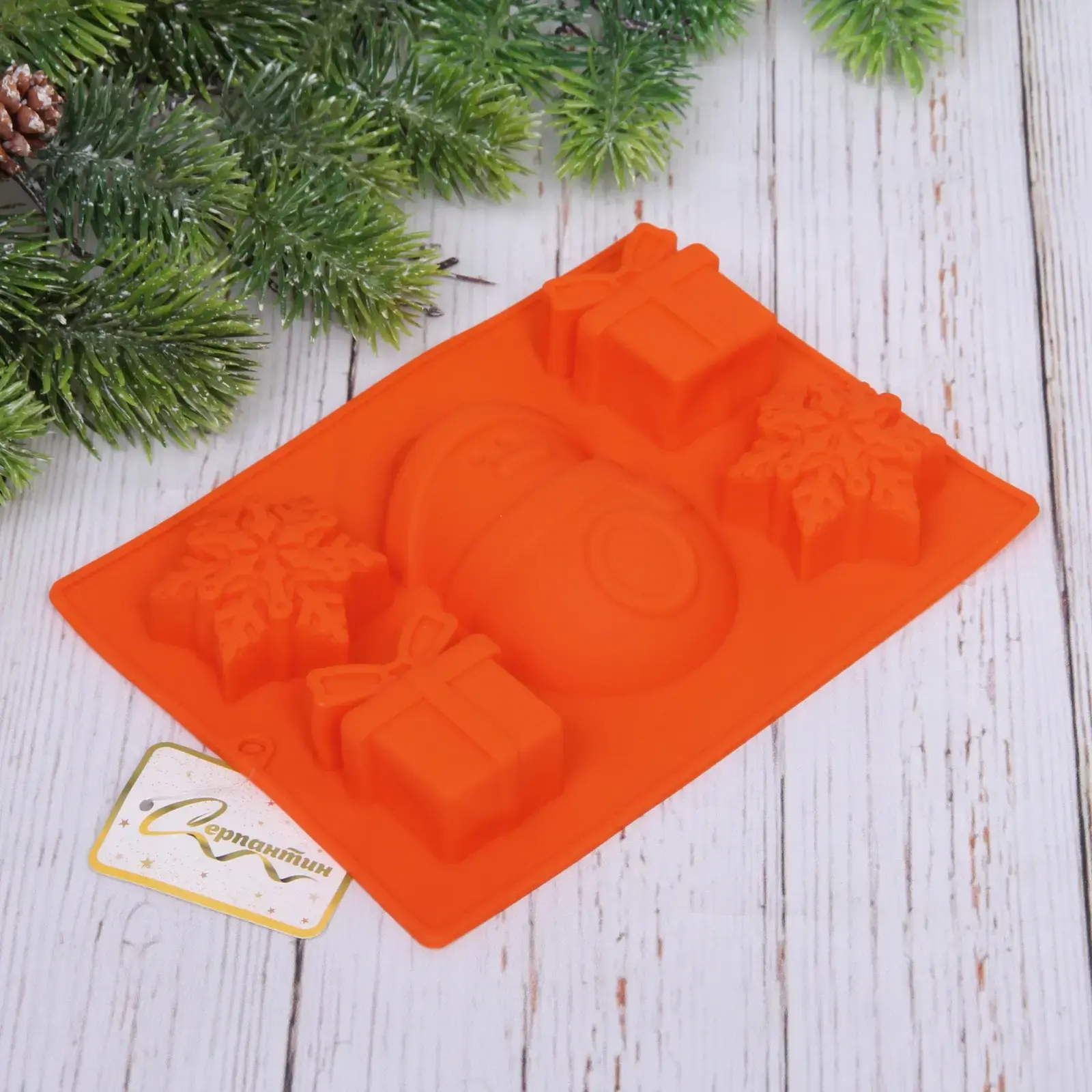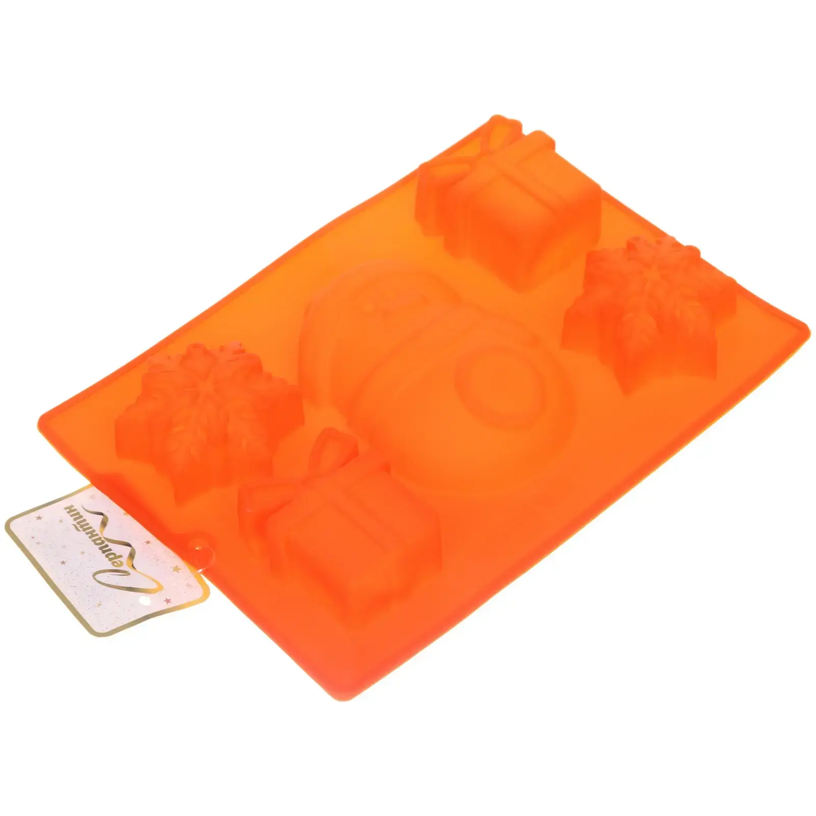 Форма силиконовая «Снеговик с подарками» — это идеальный способ добавить нотку веселья и уюта в ваши новогодние угощения. С помощью этой формы вы сможете легко создать оригинальные десерты, которые порадуют как детей, так и взрослых. Ярко-оранжевый цвет формы добавляет праздничного настроения, а уникальный дизайн с рельефными фигурами снеговика и подарков делает каждое угощение по-настоящему особенным.