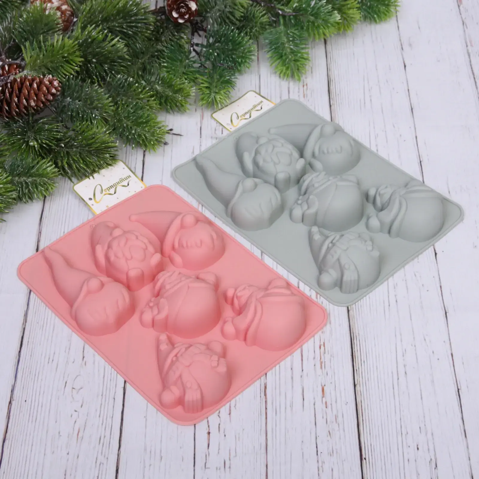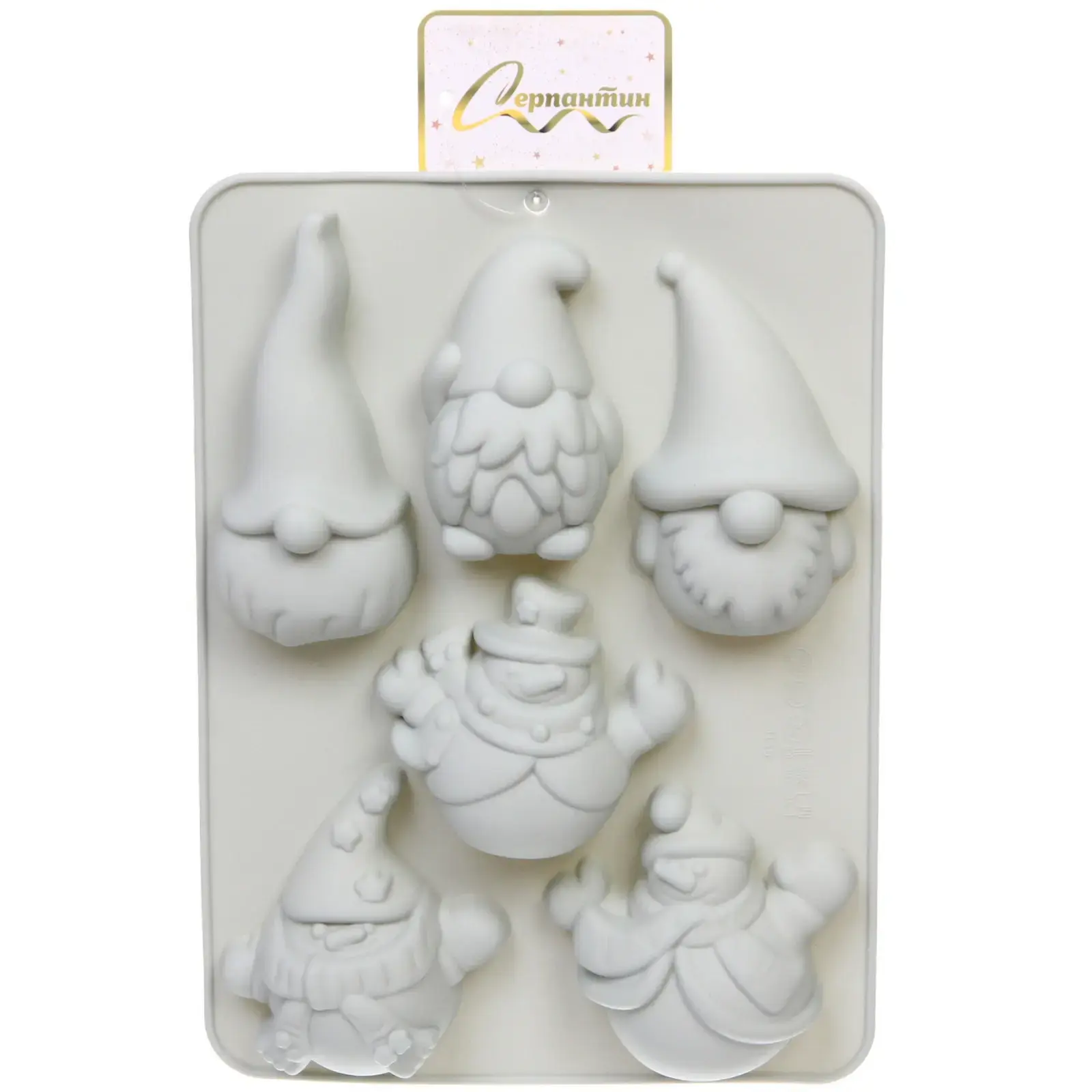 Форма силиконовая «Золотая коллекция» для праздничной выпечки, 6 фигурок гномов и снеговиков, 16,5х22,5х4 см