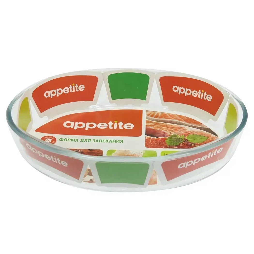 Стеклянная поверхность сохраняет естественный вкус продуктов, а прозрачные стенки позволяют контролировать процесс приготовления. Утолщенные бортики обеспечивают безопасность при перемещении даже в раскаленной духовке.