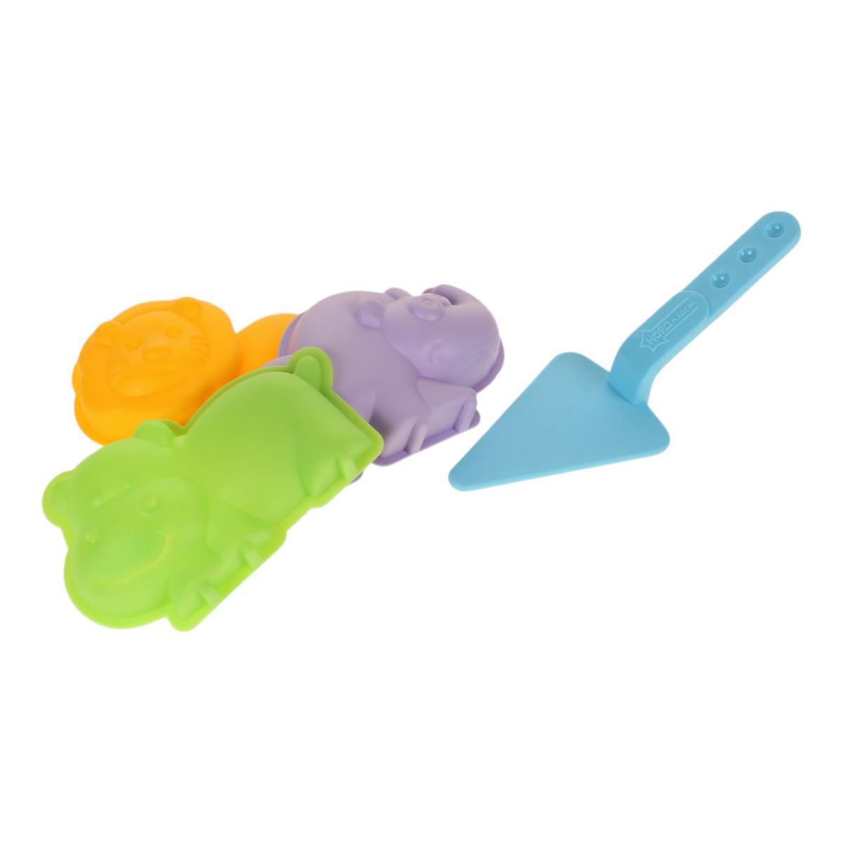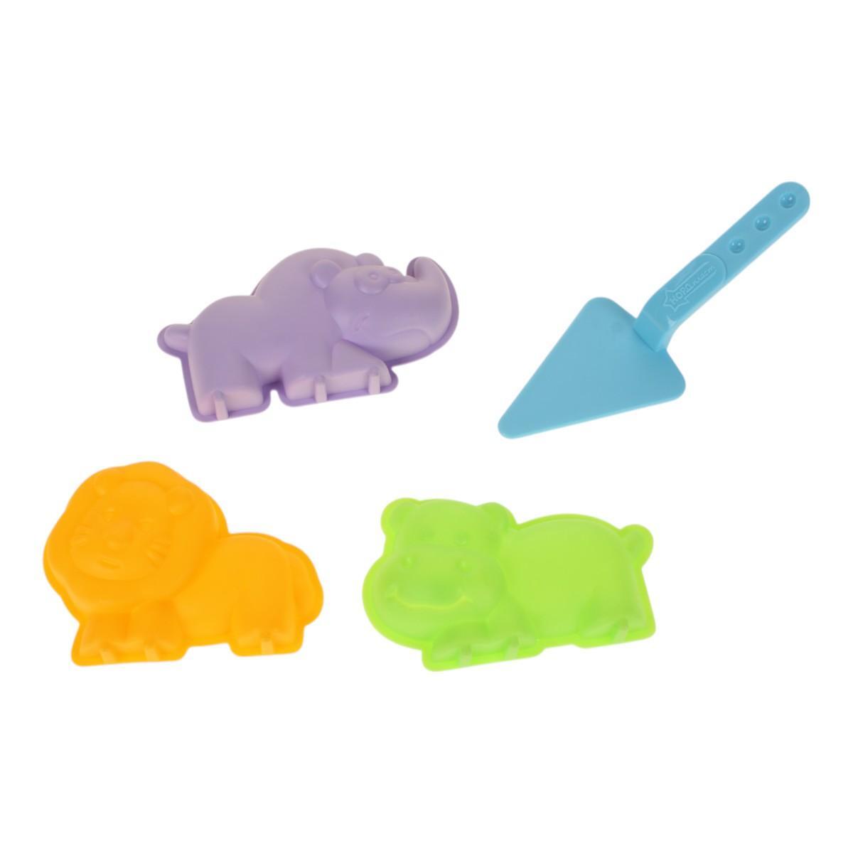 Формочки для песка, 3шт: Лев, Носорог, Бегемот + мастерок, яркий пластик