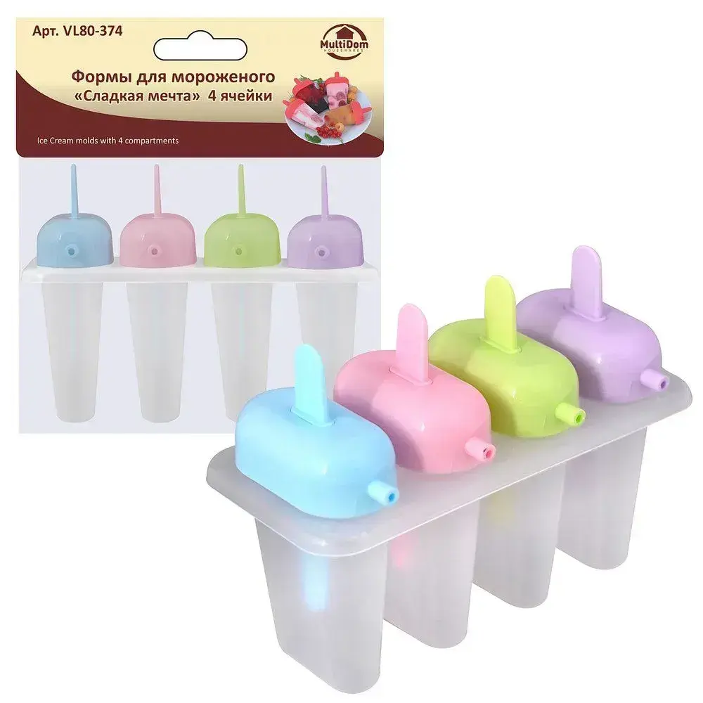 Практичная форма с отдельными секциями позволяет одновременно замораживать 4 разных вкуса. Яркие цвета и удобные трубочки-ручки превратят процесс приготовления в семейное развлечение!